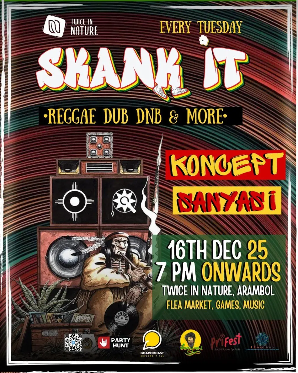 Приглашаем вас на вечеринку в Арамболе! Каждый вечер тщательно продуман, чтобы представить вам музыкальное разнообразие. Вы услышите артистов со всей Индии и всего мира. 🎸 Приходите и насладитесь танцами и общением. Вечеринка пройдет в Twice In Nature, время проведения с 12.00 и 19.00. 💃