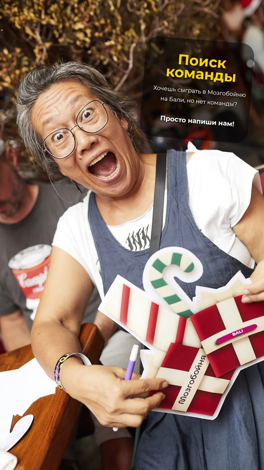 Приглашаем на Мозгобойню Бали "Кино и музыка: Новогоднее". Это отличная возможность окунуться в праздничную атмосферу. Тебя ждут вопросы о фильмах и мультиках, новогодние песни и кадры, от которых станет тепло на душе. Игра пройдёт 17 декабря, среда, в 19:30 в DEUS Ex Machina. Мозгобойня — это командная игра-квиз на логику, сообразительность и кругозор. В неё играют игроки в 17 странах и 217 городах по всему миру. Собирай команду от 4 до 12 человек и приходи играть. Нет команды? Просто напиши организаторам! 🎄🎁