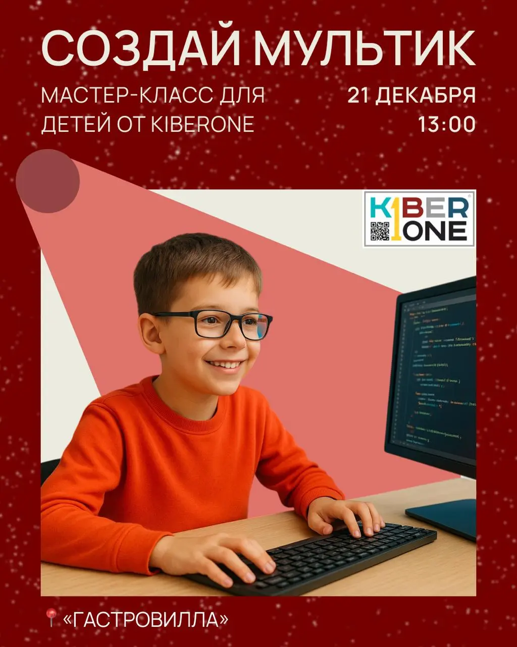 Для детей предлагается мастер-класс от KIBERone, где они научатся создавать мини-фильмы с анимацией.