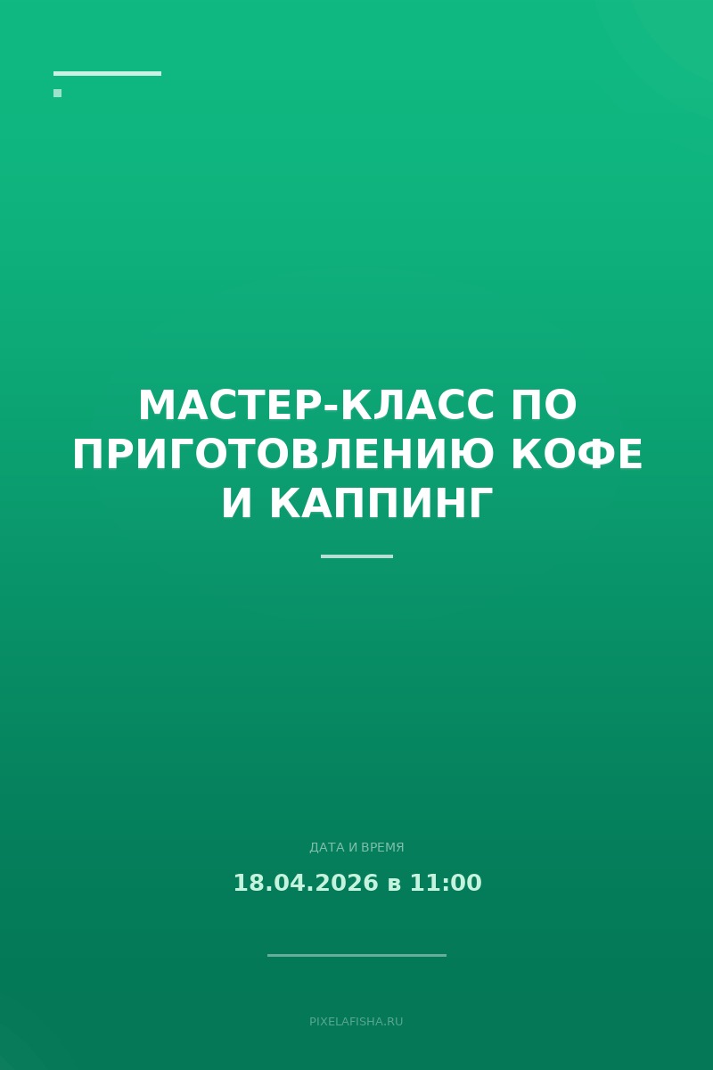 Мастер-класс посвящённый вкусу, настроению и искусству заваривания кофе в домашних условиях без кофе-машины. Участники научатся использовать альтернативные способы заваривания: кемекс, пуровер и аэропресс. Также узнают, как подобрать и настроить ручную кофемолку для идеального раскрытия вкуса напитка. В программе дегустация различных сортов кофе и сравнение колд брю. Мероприятие пройдет 18 апреля 2026 года в 11:00.