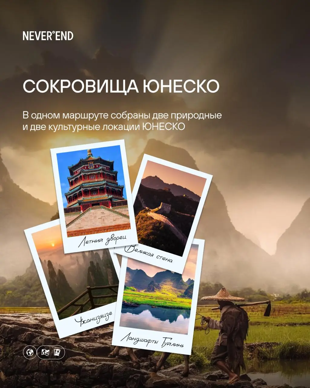 Приглашаем вас в увлекательное путешествие по Китаю! Посетим живописные места, включая Великую Китайскую стену и Горы Аватара. Погрузимся в культуру Китая, попробуем чай, изучим каллиграфию и тайцзи. Проплывем по реке Ли на бамбуковых плотах. Закончим наше путешествие круизом и насладимся видами ночного Гонконга. Проживание в премиальных отелях. Вас ждут впечатления и новые знакомства.
