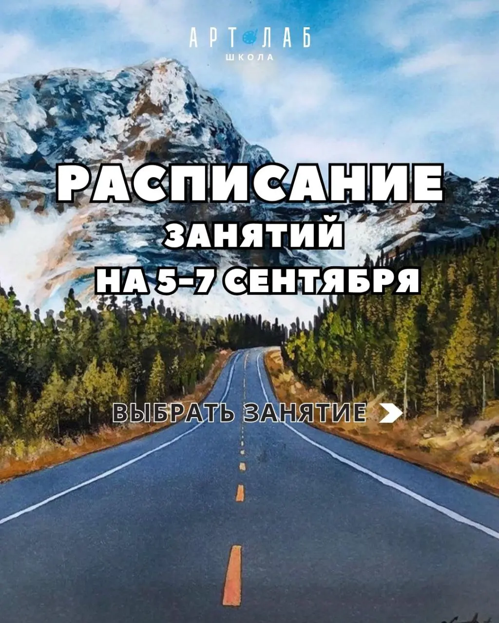 Расписание занятий на 5-7 сентября в школе рисования «АртЛаб»
