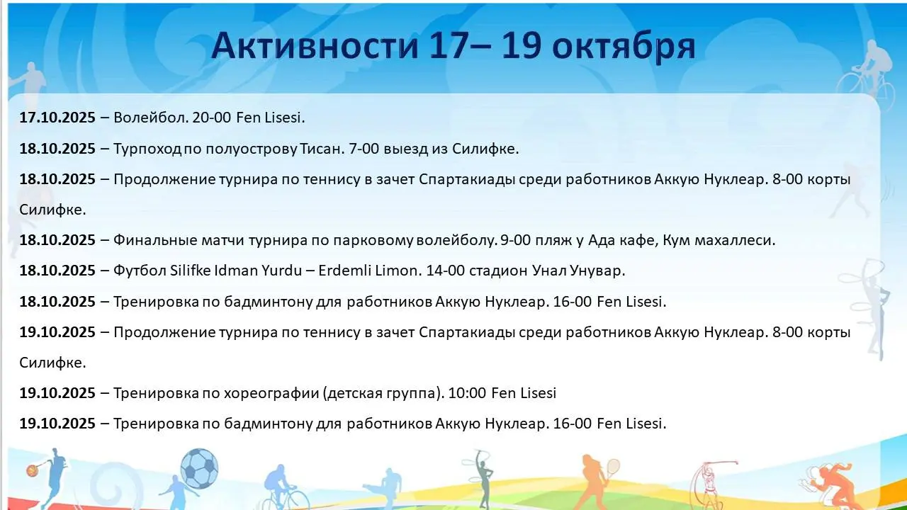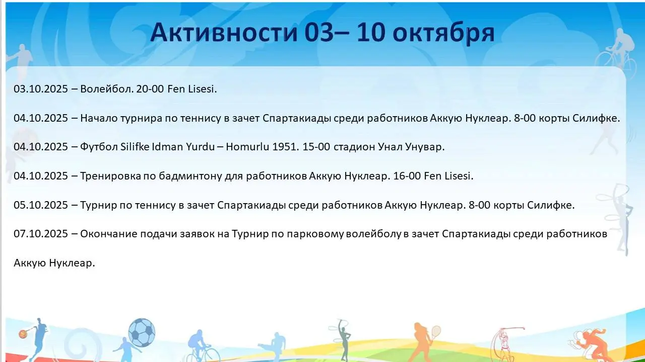 Все спортивные события Аккую, расписание тренировок, турниров, соревнований, активностей - здесь!