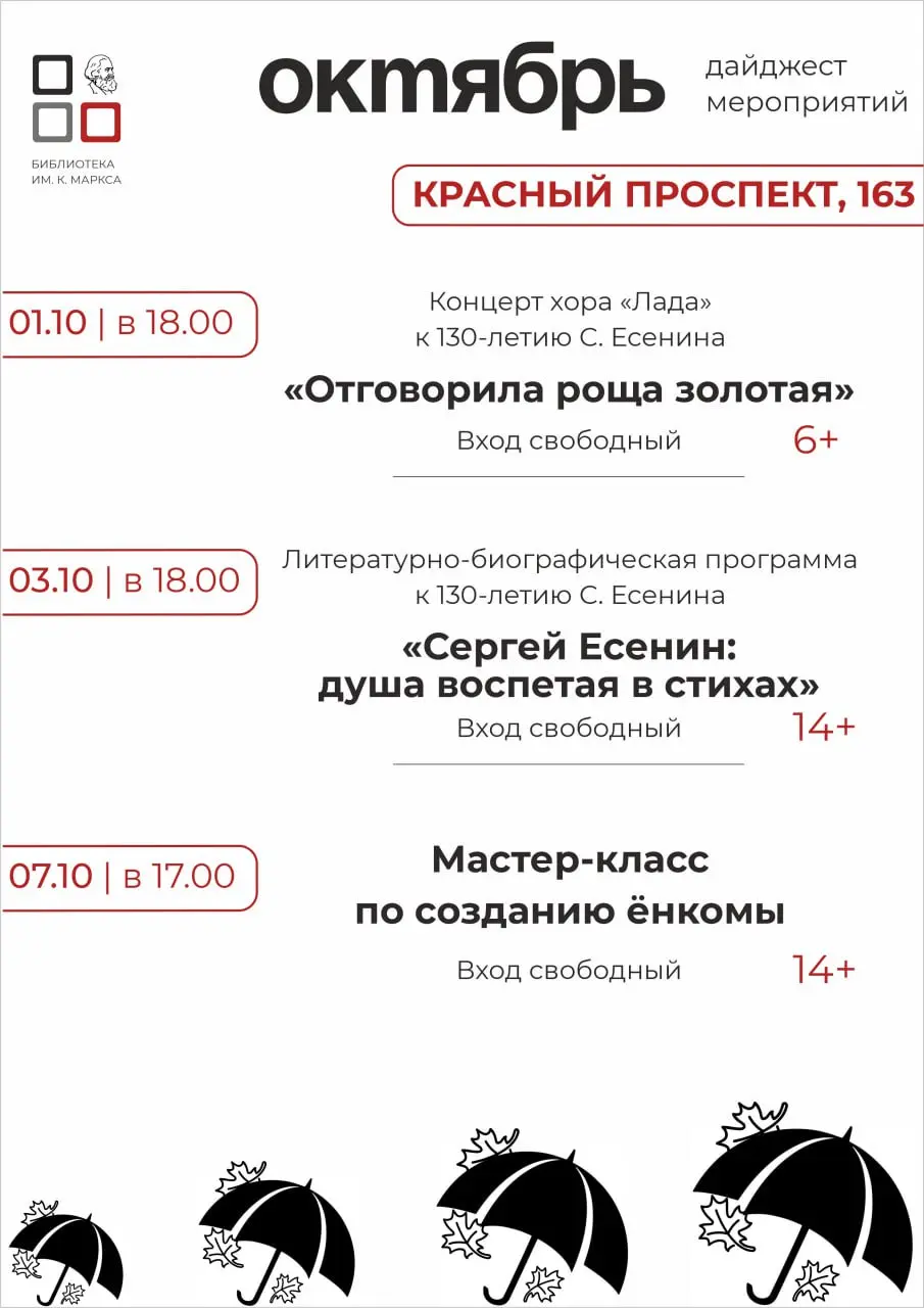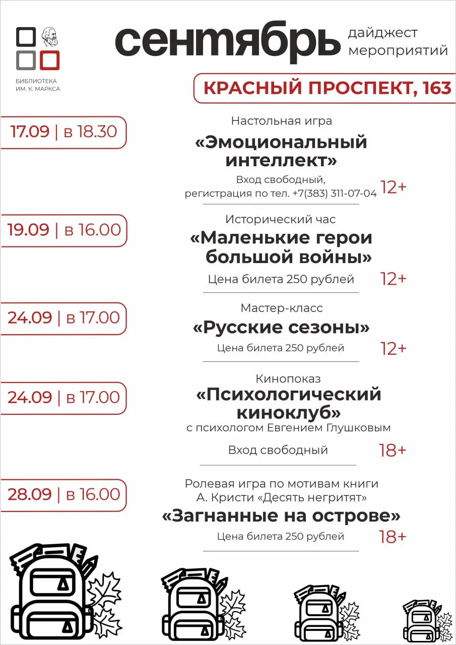 Центральная городская библиотека им. К. Маркса - г. Новосибирск, Красный проспект, 163 и ул. Фрунзе, 3. Здесь публикуются главные события, анонсы предстоящих мероприятий, а также самая актуальная и полезная информация о работе библиотеки.