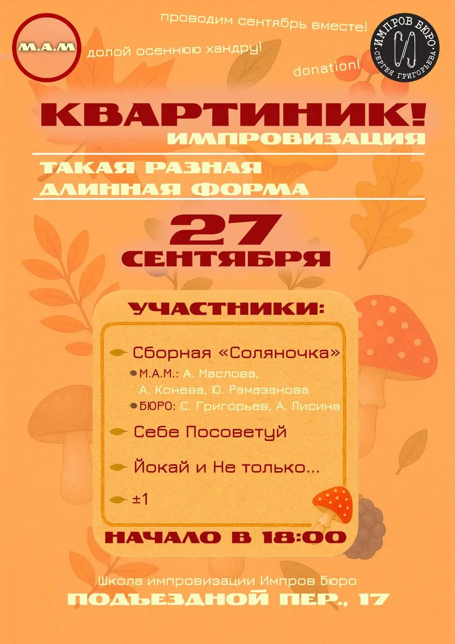 Ты здесь, чтобы сиять и радоваться жизни. Каждое воскресенье — джем по импровизации в 15:00. Загородный 21/23. • Обучение | Курсы | Мастер-классы • Шоу в жанре театральной импровизации • Тематические мероприятия по интересам @MisterSergey