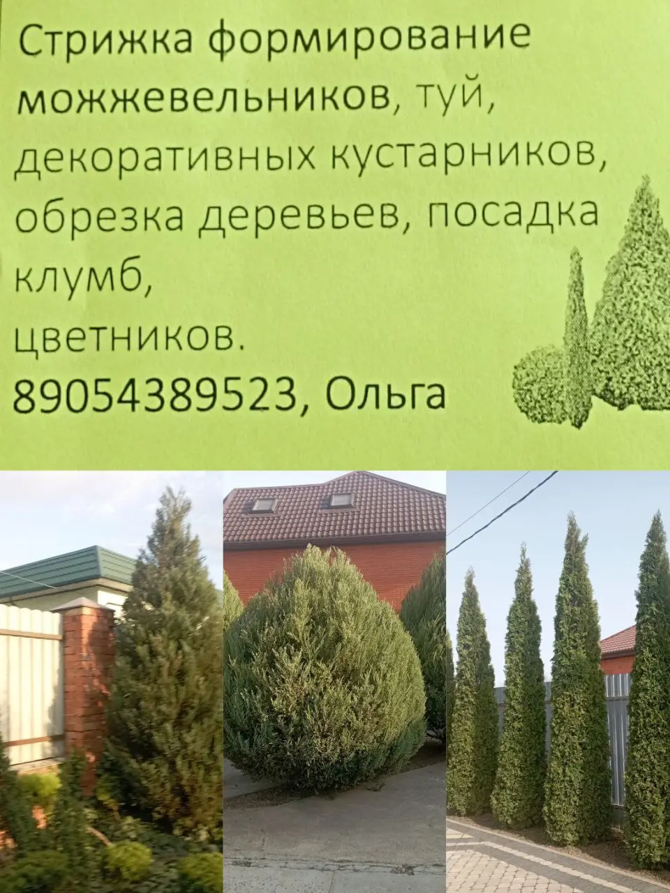 Стрижка формирование можжевельников, туй, декоративных кустарников, обрезка деревьев, посадка клумб; цветников