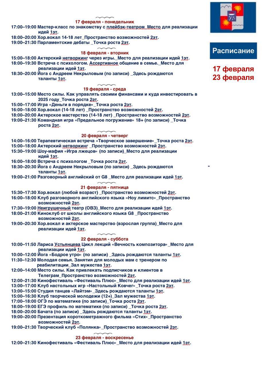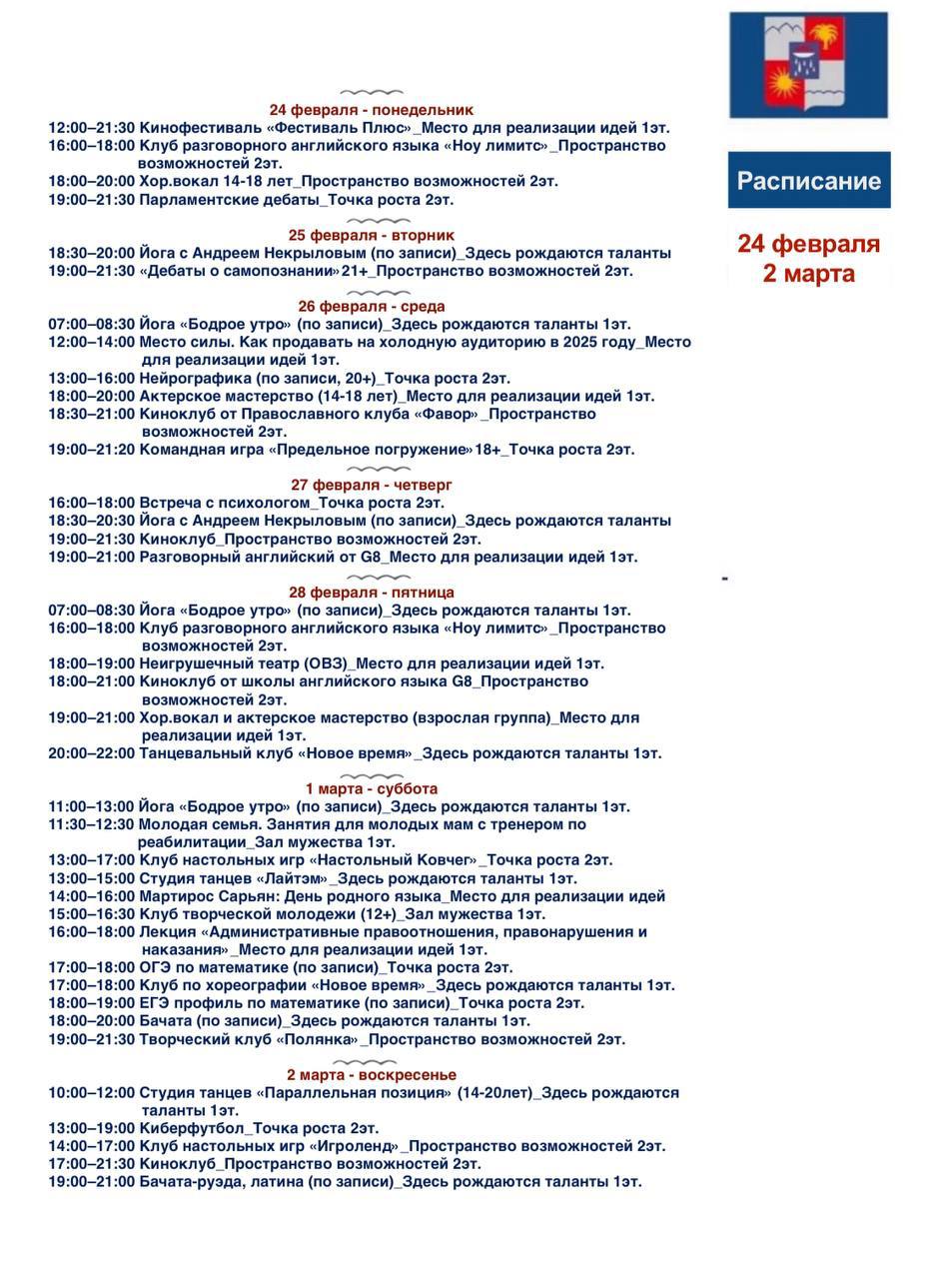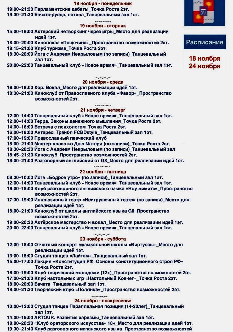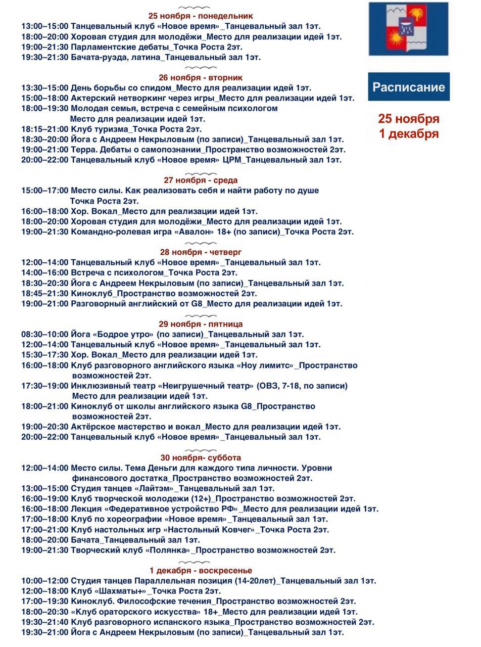 Расписание мероприятий в Доме Молодёжи с 18 по 24 ноября