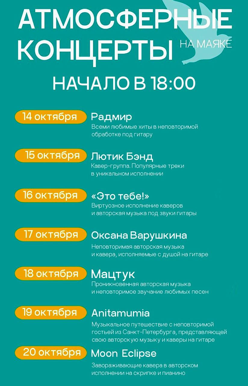 Афиша музыкальных вечеров на пляжном комплексе «Маяк»