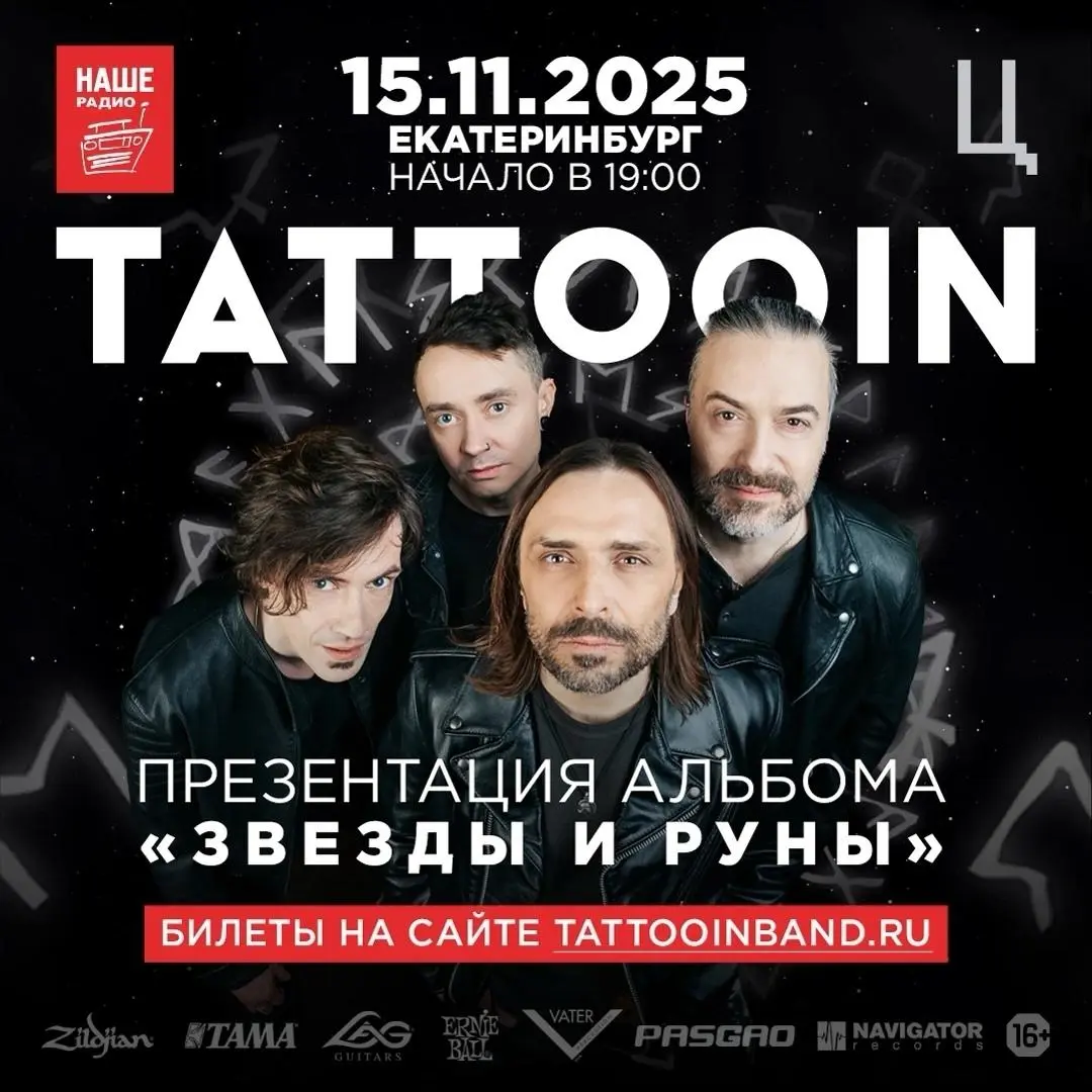 Друзья, Челябинск! Уже скоро сыграем у вас! Когда: 14-го ноября, в 19:00 Где: OZZ Концертная Площадка | Челябинск, ул. Энтузиастов, 11 Билеты на сайте: tattooinband.ru Встреча: vk.com/tattooin_chl До встречи в Челябинске! Таков Путь! НАШЕ РАДИО 14.11.2025 ЧЕЛЯБИНСК НАЧАЛО В 19.00 9Z CONCERT CLUB по TATTOQIN ПРЕЗЕНТАЦИЯ АЛЬБОМА 3 ВЕ 3 ды и РУН Ы % БИЛЕТЫ НА САЙТЕ TATTOOINBAND RU