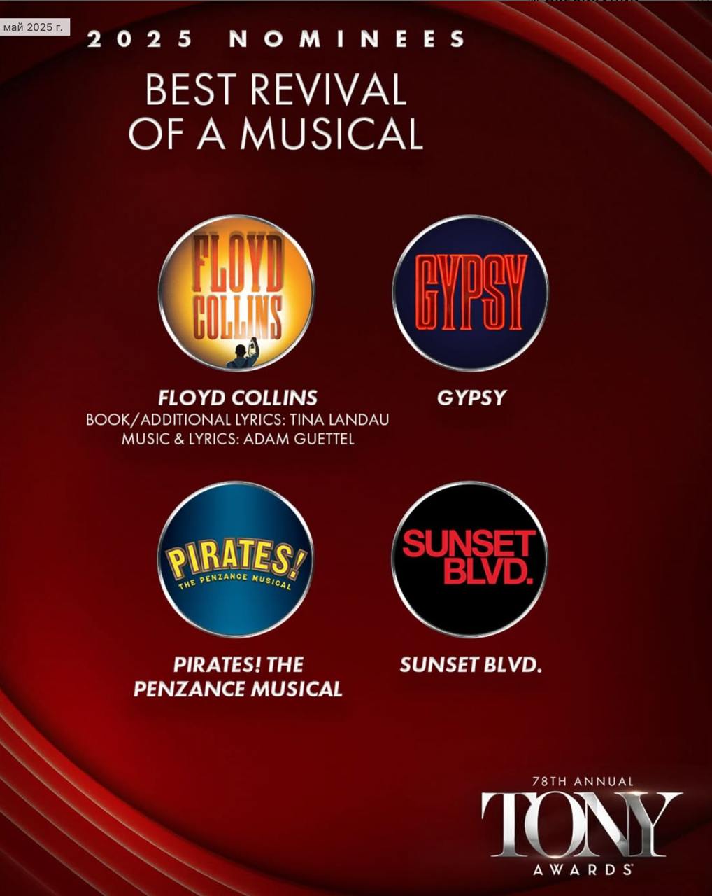 В Нью-Йорке объявили номинантов на премию «Тони» за сезон 2024/25. Итоги распределения наград станут известны 8 июня на церемонии в Радио-сити-мьюзик-холле. Представлены шорт-лист и лидеры в категориях лучших мюзиклов, возобновлений, исполнителей и режиссеров. Среди номинаций можно найти как крупные шоу, так и спектакли с нестандартными историями.