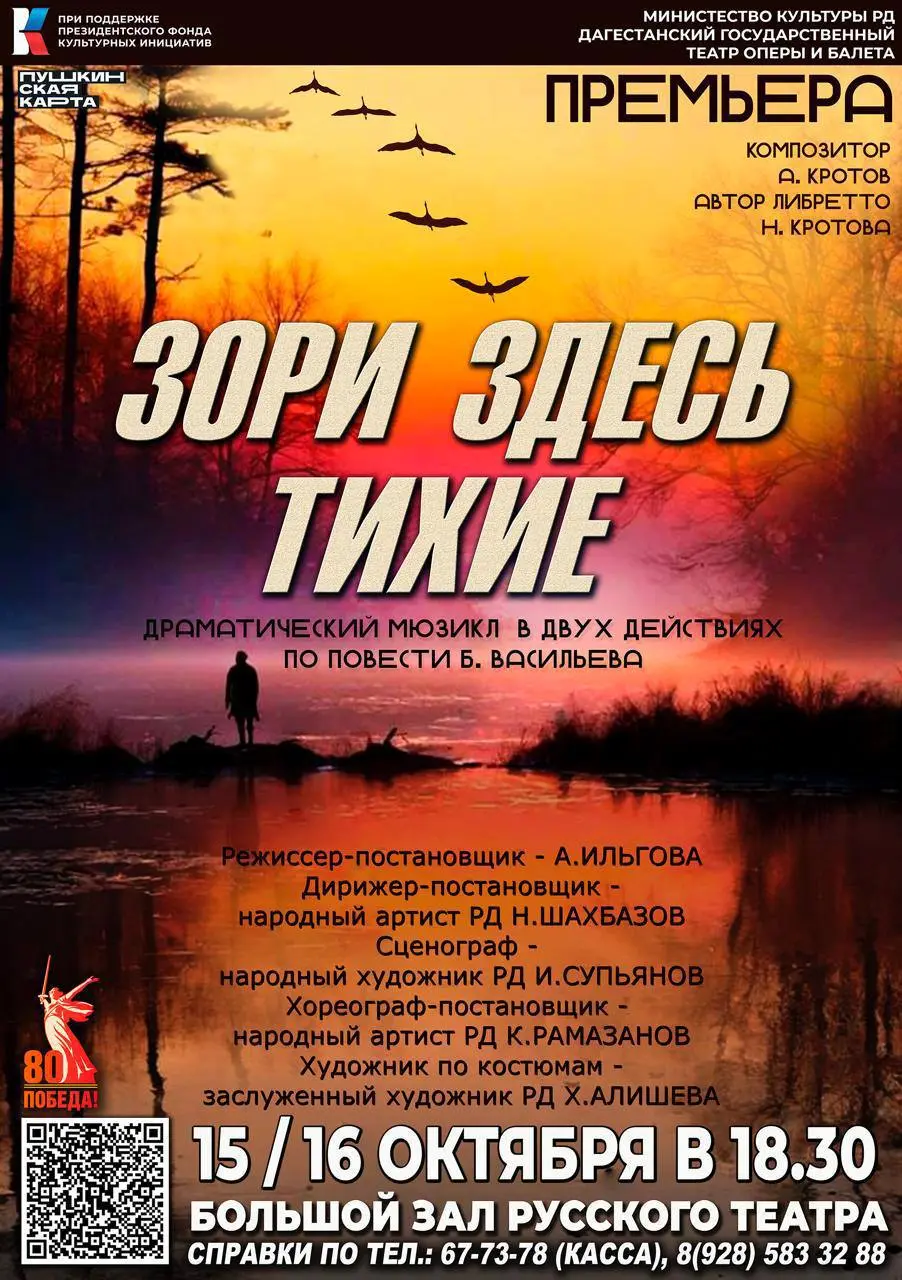 Премьера для самых маленьких — спектакль «Мамины сказки» от Театра кукол. Постановка переносит детей в теплую атмосферу заботы, родительских историй и детских фантазий. В спектакле используются яркие куклы, сказочное оформление и красивые эффекты. Билеты — в кассе театра или по ссылке. Место: Дагестанский государственный театр кукол. Время: 2 октября в 10:00.