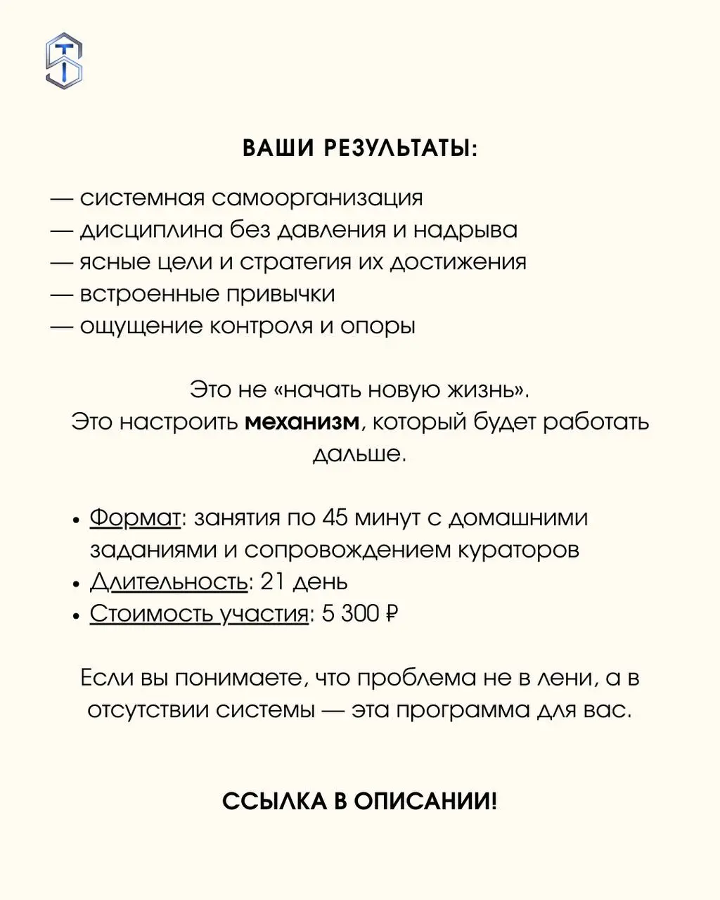 Начните 2026 год с прочного фундамента для достижения целей. Программа поможет управлять ресурсами и привить полезные привычки. Участники научатся планировать и достигать долгосрочных результатов. В программе системность, организация и анализ работы. Спорт, нагрузки и активность для крепкого здоровья. 🚀