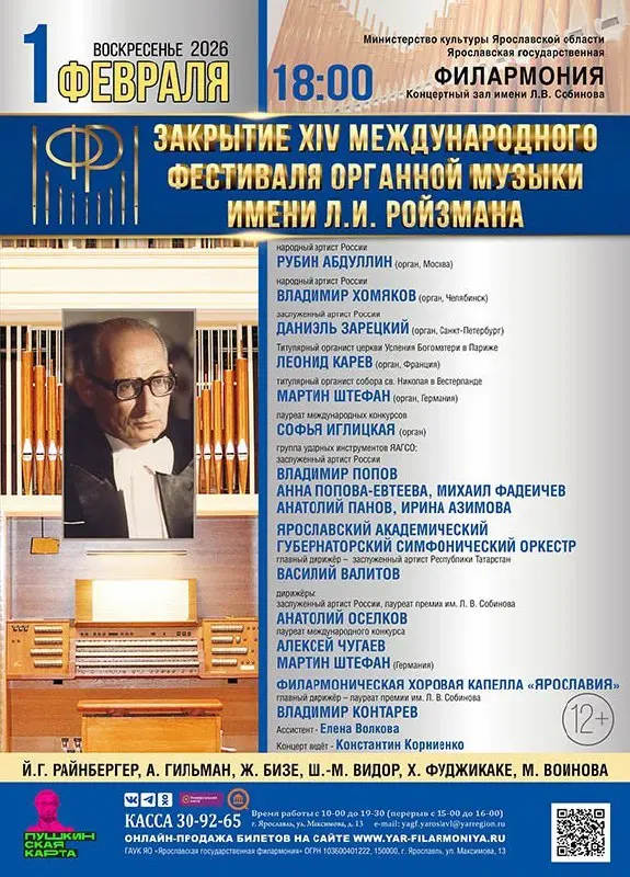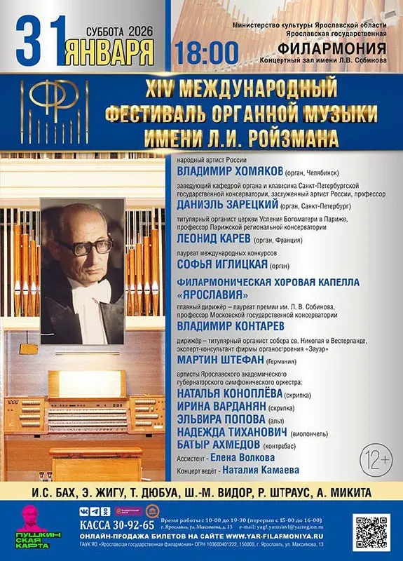 Фестиваль органной музыки имени Л.И. Ройзмана пройдет в Ярославле в 2026 году. Гостей ждет насыщенная программа. Концерты пройдут в Филармонии. Приходите насладиться музыкой! 🎶