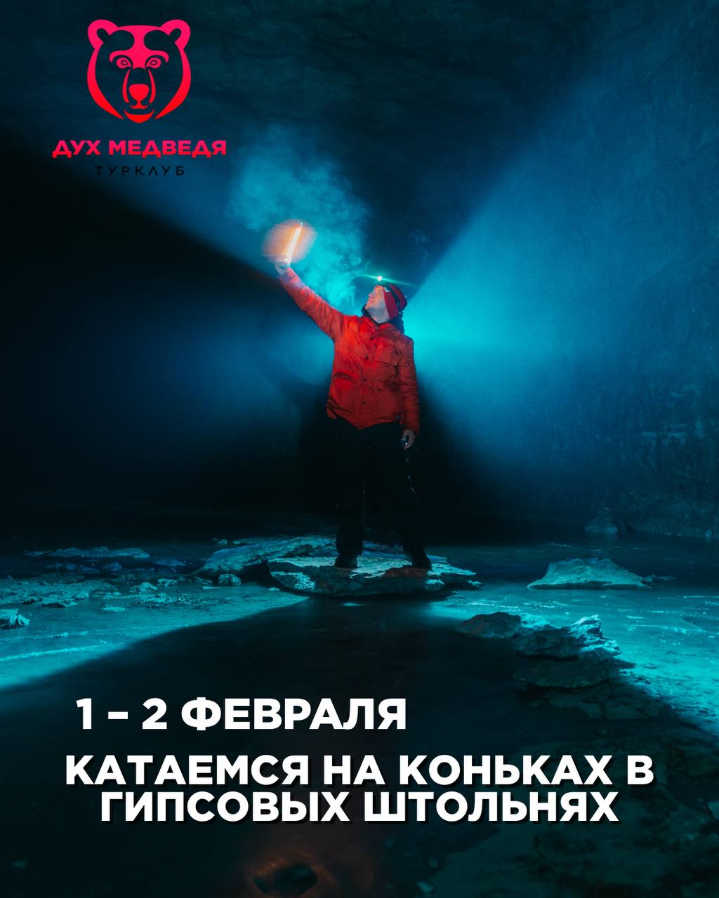 💔 1 – 2 Февраля катаемся на коньках в Гипсовых штольнях! Здесь нет толп и очередей, только волшебство и магия вокруг 🥰 Тур для тех, кто любит пещеры, таинственные истории и необычные приключения! А еще, очень ценит комфорт: ведь нас ждет ночевка в теплом и уютном доме в классной компании, с жаркой баней и любимыми песнями под гитару!