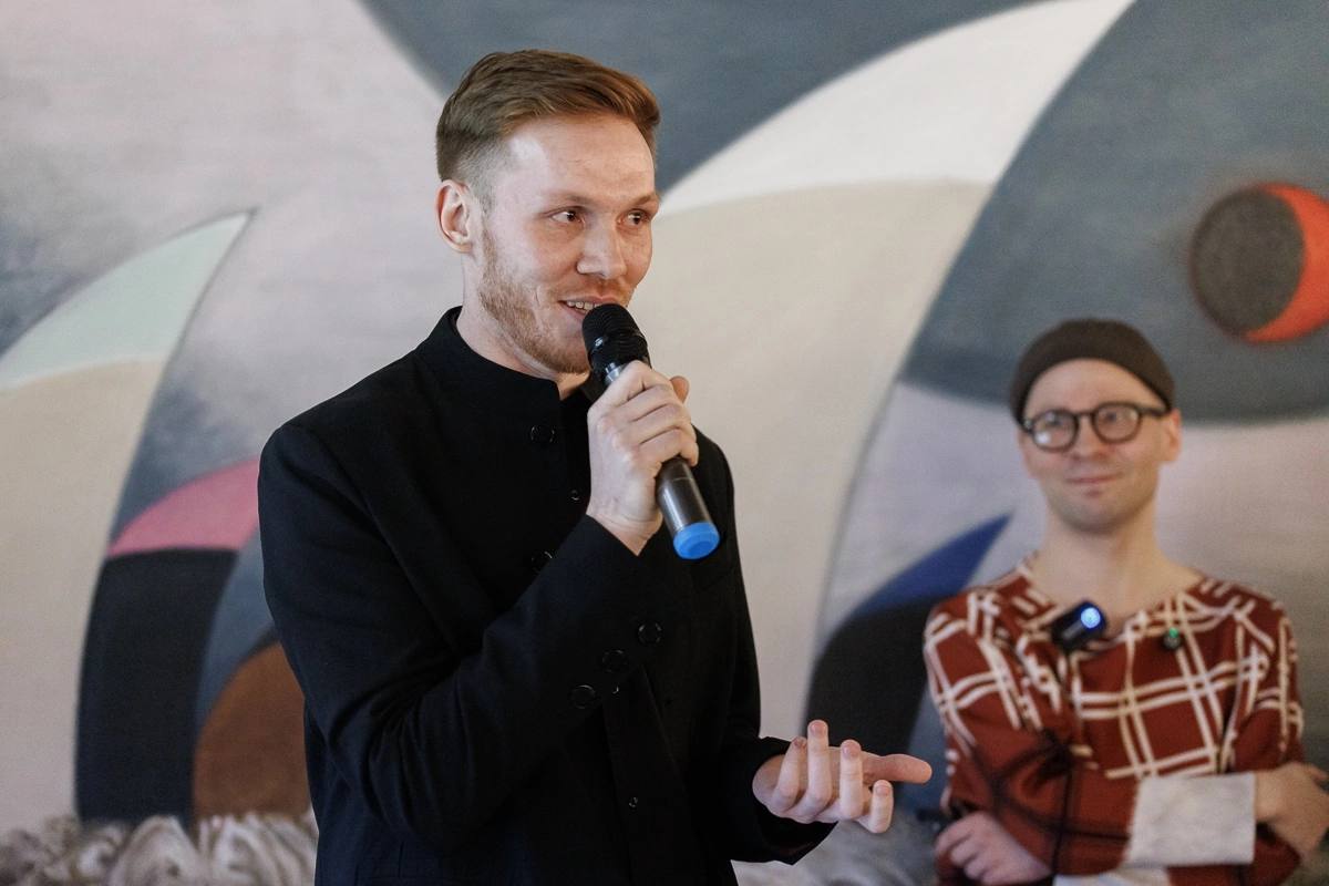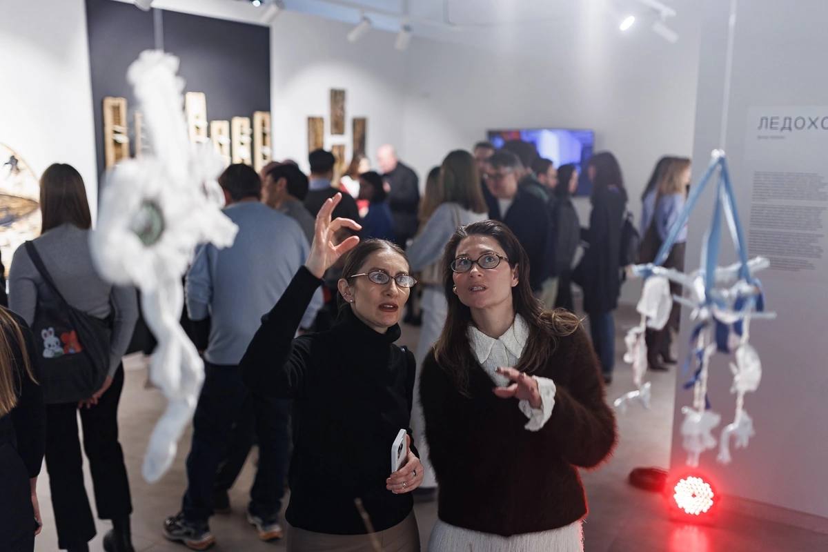 Гости послушали экскурсии от авторов: участников творческой группы «Эмноюмно» Жон-Жон Сандыра и Кучырана Юри, Максима Агафонова и Марка Берманa — и куратора выставки. Художники поделились своими размышлениями о том, как финно-угорская культура претерпевает трансформации, но при этом сохраняет магию в предметах повседневности и сакральных образах, как старые традиции, несмотря на утрату прямой связи с реальностью, продолжают жить в сердцах и трансформируются, чтобы вдохновлять нас сегодня.