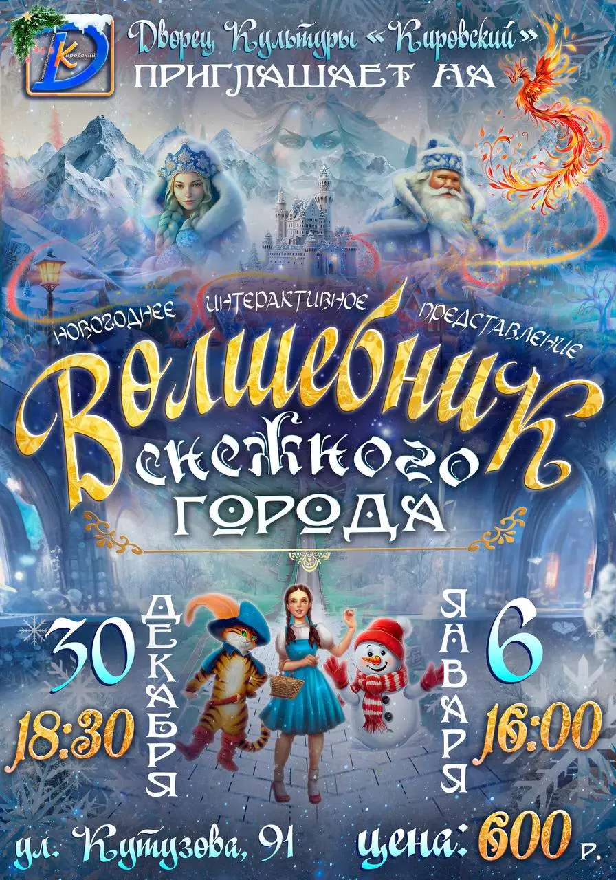 Спектакль для всей семьи «Волшебник снежного города» перенесет в сказочную атмосферу. Вас ждут захватывающие приключения девочки Полли и ее друга-кота Антошки в Зимнем Яре. Они будут искать дорогу к волшебнику Морозу. Продолжительность спектакля около часа, включая игры с персонажами у елки. Билеты можно купить онлайн. 🎄