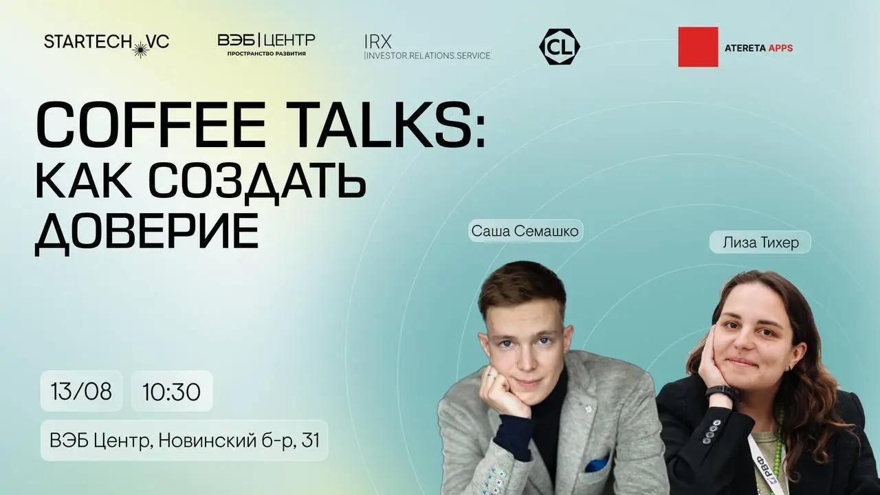 Уже 30 июля пройдет встреча от Startech.vc и ВЭБ Центра, где за чашкой кофе соберутся предприниматели, эксперты и инвесторы для обмена идеями и опытом.