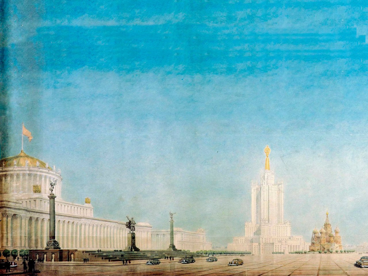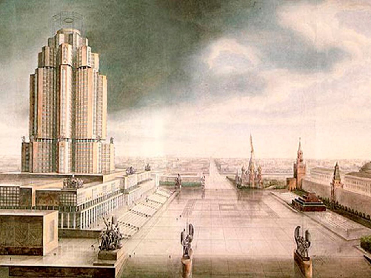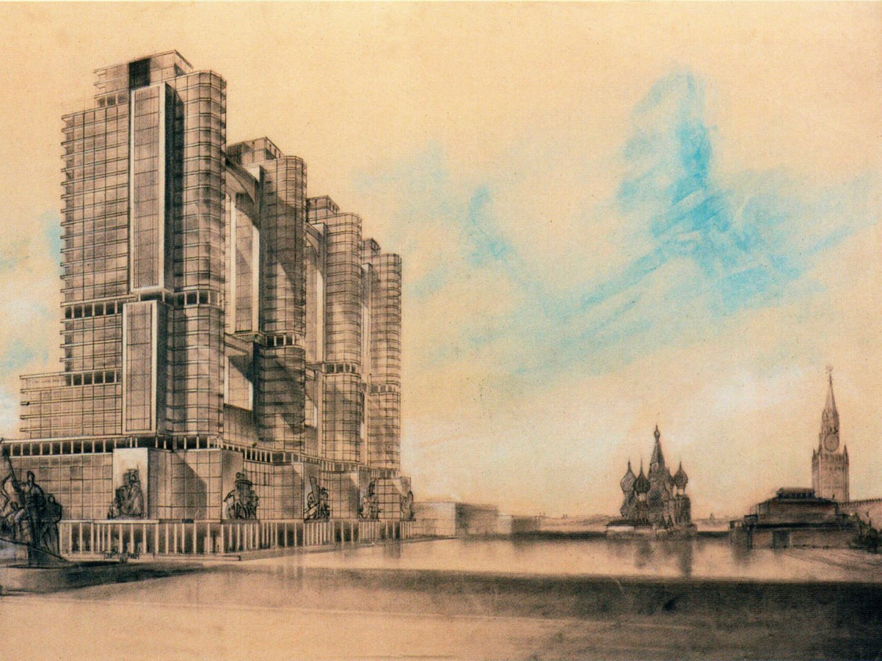 Знаете ли вы, что в 1930-х годах Красная площадь могла измениться до неузнаваемости? В 1934 году на месте ГУМа планировали построить здание Наркомата тяжелой промышленности. В конкурсе участвовали лучшие архитекторы того времени – Александр и Виктор Веснины, Алексей Щусев, Борис Иофан и Аркадий Мордвинов. Если бы удалось осуществить этот замысел, мы бы гуляли по совершенно другой Красной площади и ее историческое лицо было бы утрачено. Собор Василия блаженного лишился бы доминантного положения, значительная часть Китай-города была бы уничтожена, Москва потеряла бы ГУМ. В 1937 году от строительства небоскреба отказались.