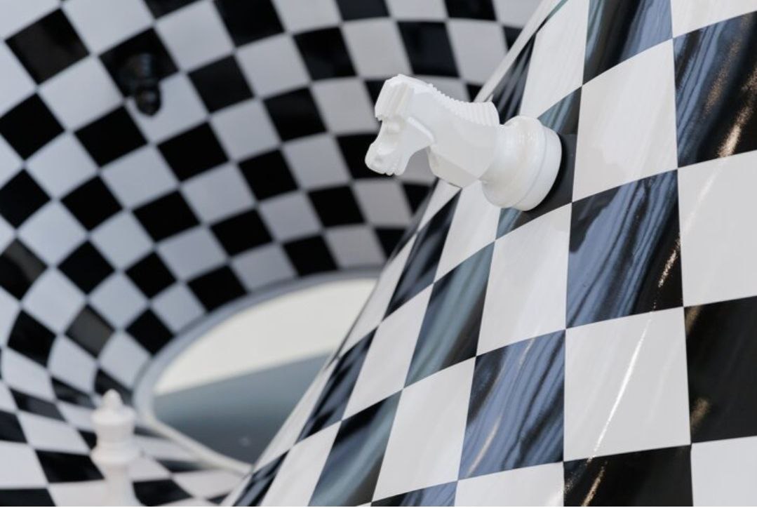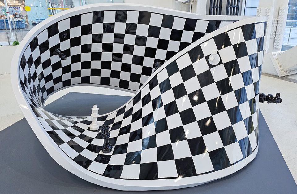 ⭐️ «Ретроградный анализ» Елены Извольской в Технопарке. Проекция существующей реальности на шахматную доску в форме ленты Мёбиуса.