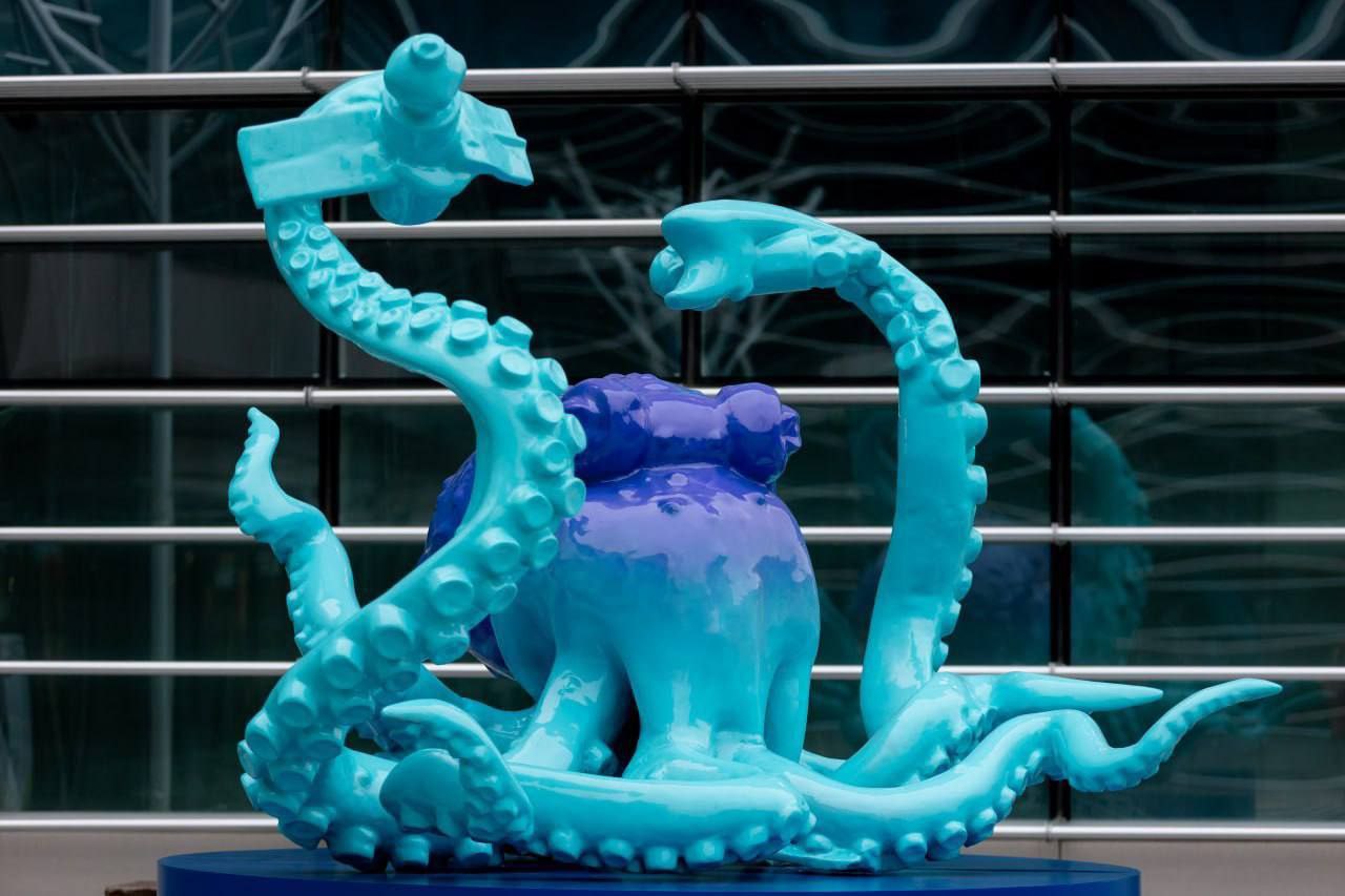 ⭐️ «Octo-Pax» Насти Миро возле бизнес-центра «Амальтея». Увеличенная копия осьминога, отправившегося в космос на ракете «Союз-2», привлекающая внимание к проблеме космического мусора.