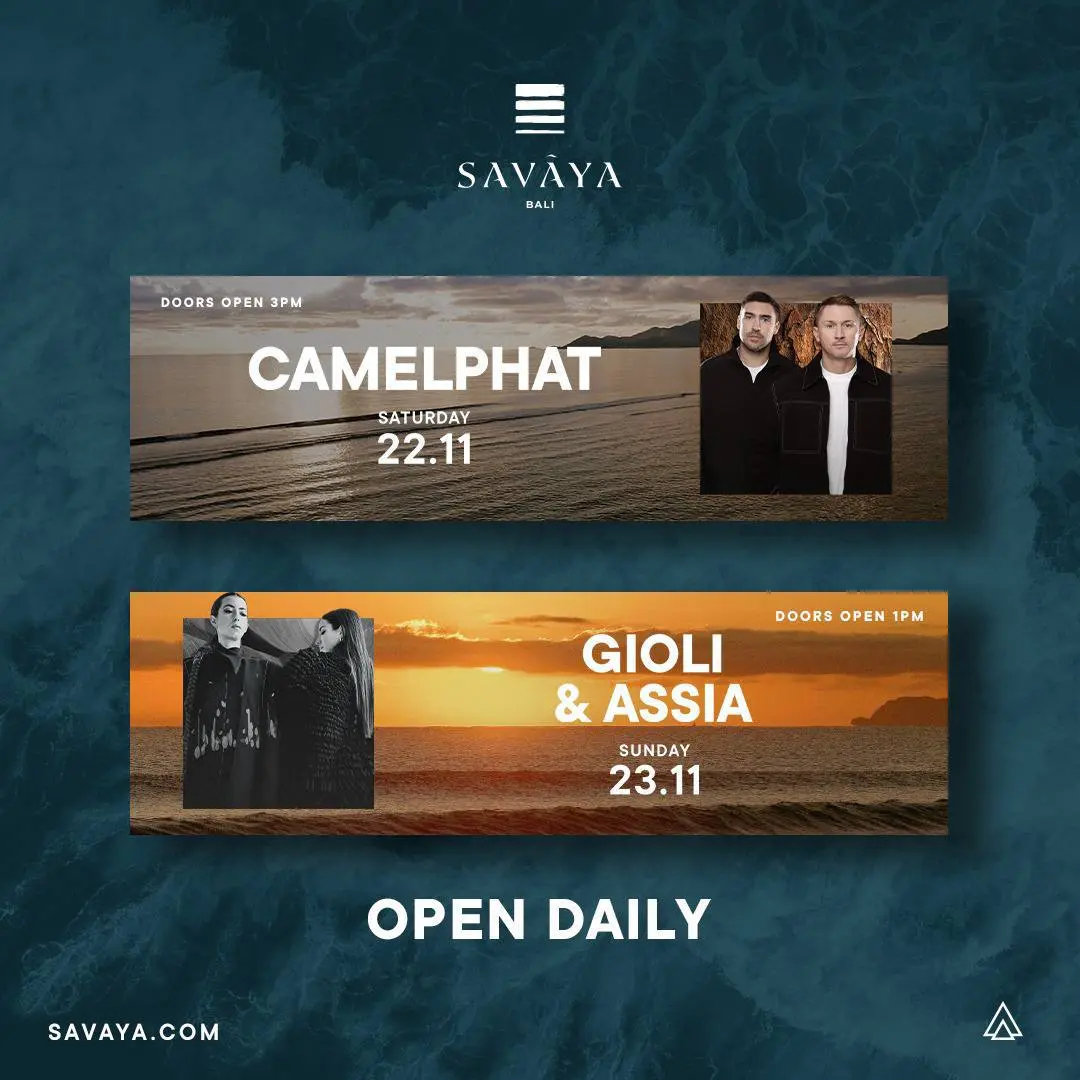 Гест-листы на эту неделю в Desa Kitsune и Savaya. В Savaya вход до 18:00, в Desa Kitsune до 22:00 для всех во вторник. По пятницам в китсуне — для девушек бесплатно всю ночь по гест-листу, для парней по гест-листу до 22:00 вход 200k, после 400k. В субботу в Savaya гест-лист для девушек до 18:00 бесплатно, для парней скидка на вход до 18:00. Регистрация в гест-лист по ссылке @gestmilash. Промокод MILANA на новогодние праздники. Текст с прикрепленных фотографий включает упоминания: Bali, Damian Lazarus Tuesday 18 November, Cameron Jack Friday 21 November, Doors Open 8.00 PM Desa Kitsune.