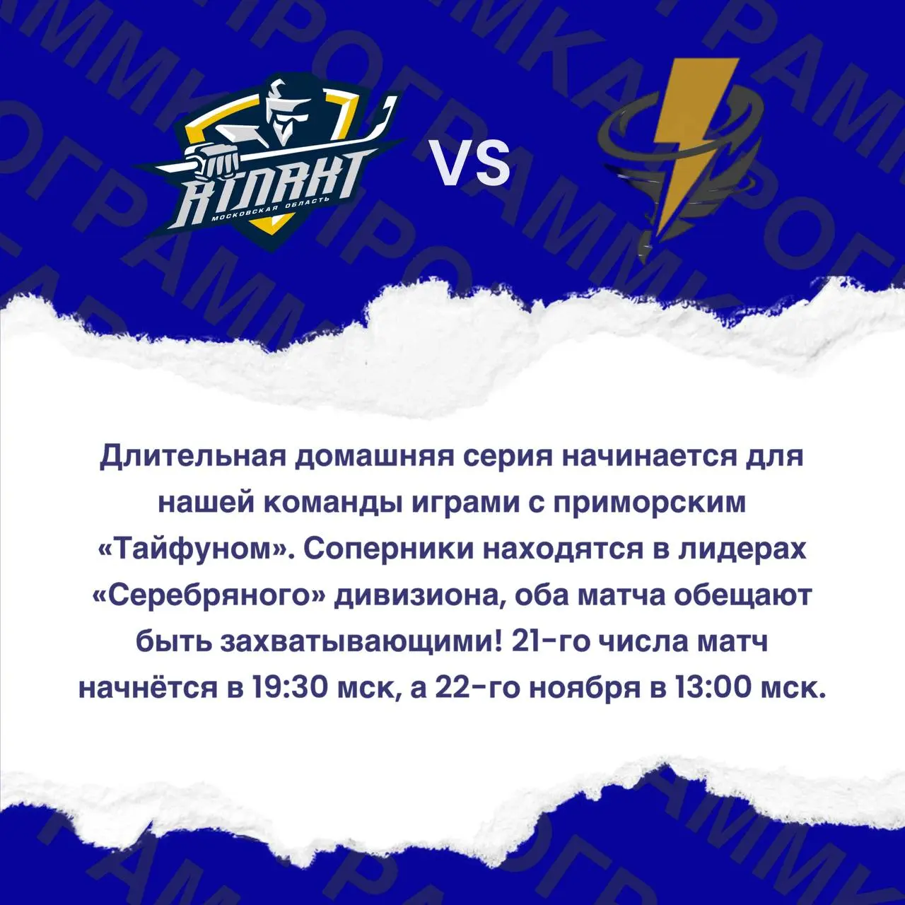 Смотрим программку к двухматчевому противостоянию с «Тайфуном». Даты и время матчей: 21 ноября и 22 ноября, стартовым временем в 19:30 по МСК, с дополнительной датой 13:00 МСК. Информация о соперниках и лигах упоминается как лидер команды, серия домашних матчей против Тайфуна, предположительно спортивное event преподнесено как серия матчей в рамках Silver division.