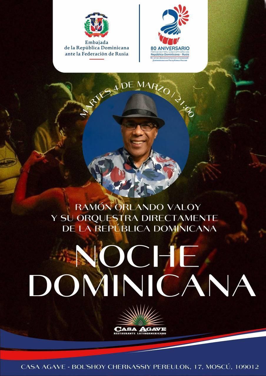 Посольство Доминиканской Республики в России отмечает 181-ю годовщину национальной независимости и 80-летие двусторонних отношений между Доминиканской Республикой и Россией незабываемой вечеринкой "Под ритмы меренге" при звездном участии доминиканского музыкального маэстро Рамона Орландо и его оркестра.