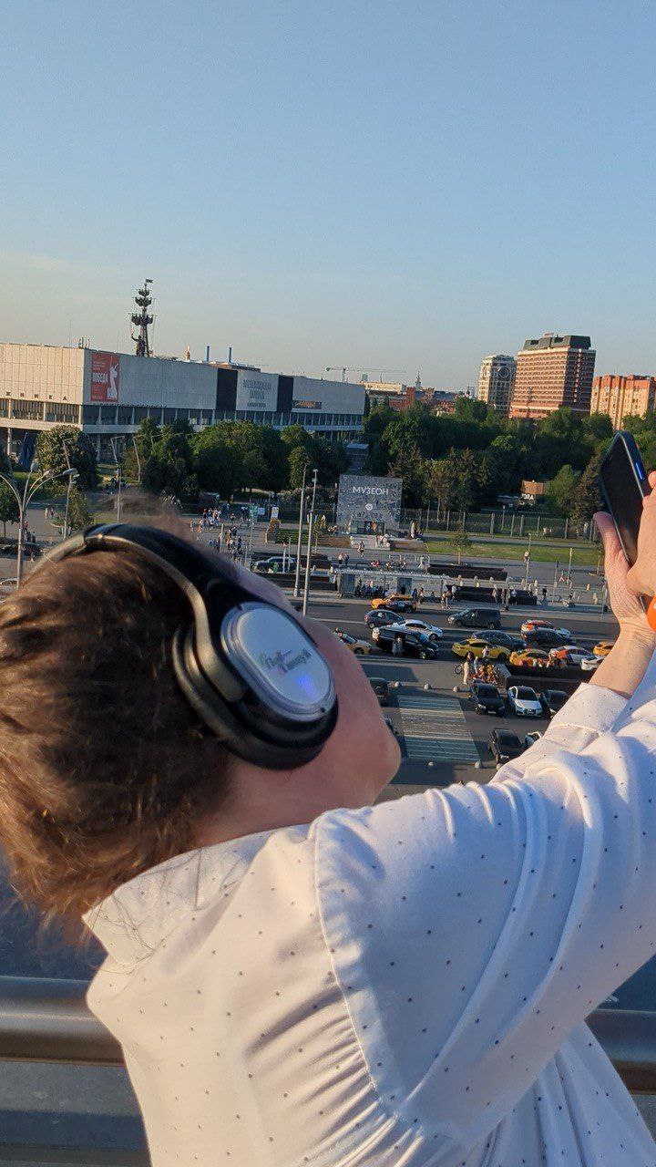 🟣В конце прогулки нас ждал приятный бонус: подъем на смотровую площадку главной арки парка также под музыку. Здесь мы встретили закат, насладились красивыми видами города и парка.