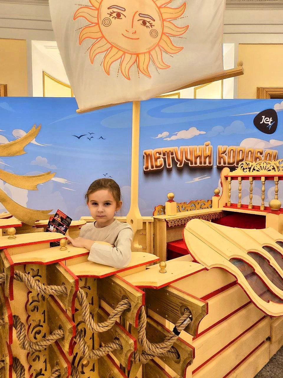 🎄несколько новогодних фотозон, в том числе и шикарный корабль, построенный Иваном 🎄зоны аквагрима (платно, около 800 р) и стойки со сладкими подарками (600-1000 р) 🎄а также две высоченных красивых елки на втором этаже, у которых за полчаса до спектакля стартует анимационная программа.