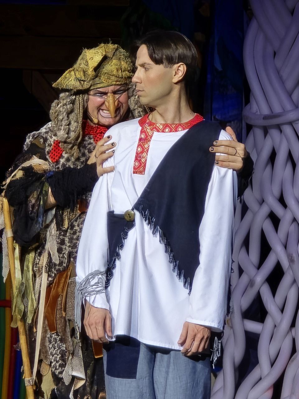 А дальше всех приглашают в зал, посмотреть знакомую всем сказку о силе любви и добра. Как по мне, в Театре Армии, ее интересно разнообразили. Тут Бабки-Ёжки зажигают под рок-частушки, двое из ларца строят корабль и читают рэп, Полкан будто в опере исполняет свою коварную арию, а танцы подружек Водяного даже немного напомнили мне кабаре. Все это вкупе с яркими декорациями и искрометным юмором очень понравилось и детям, и взрослым.