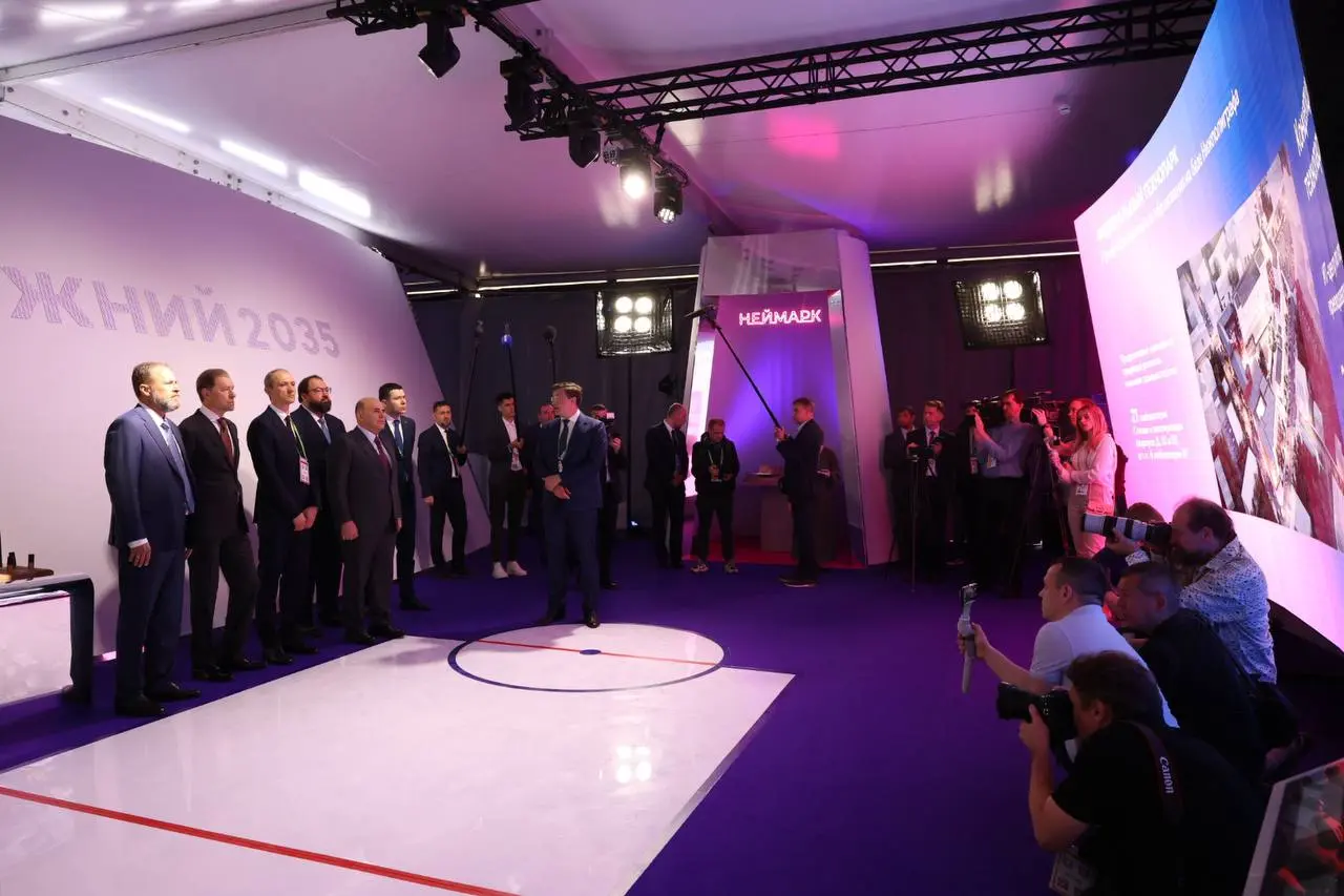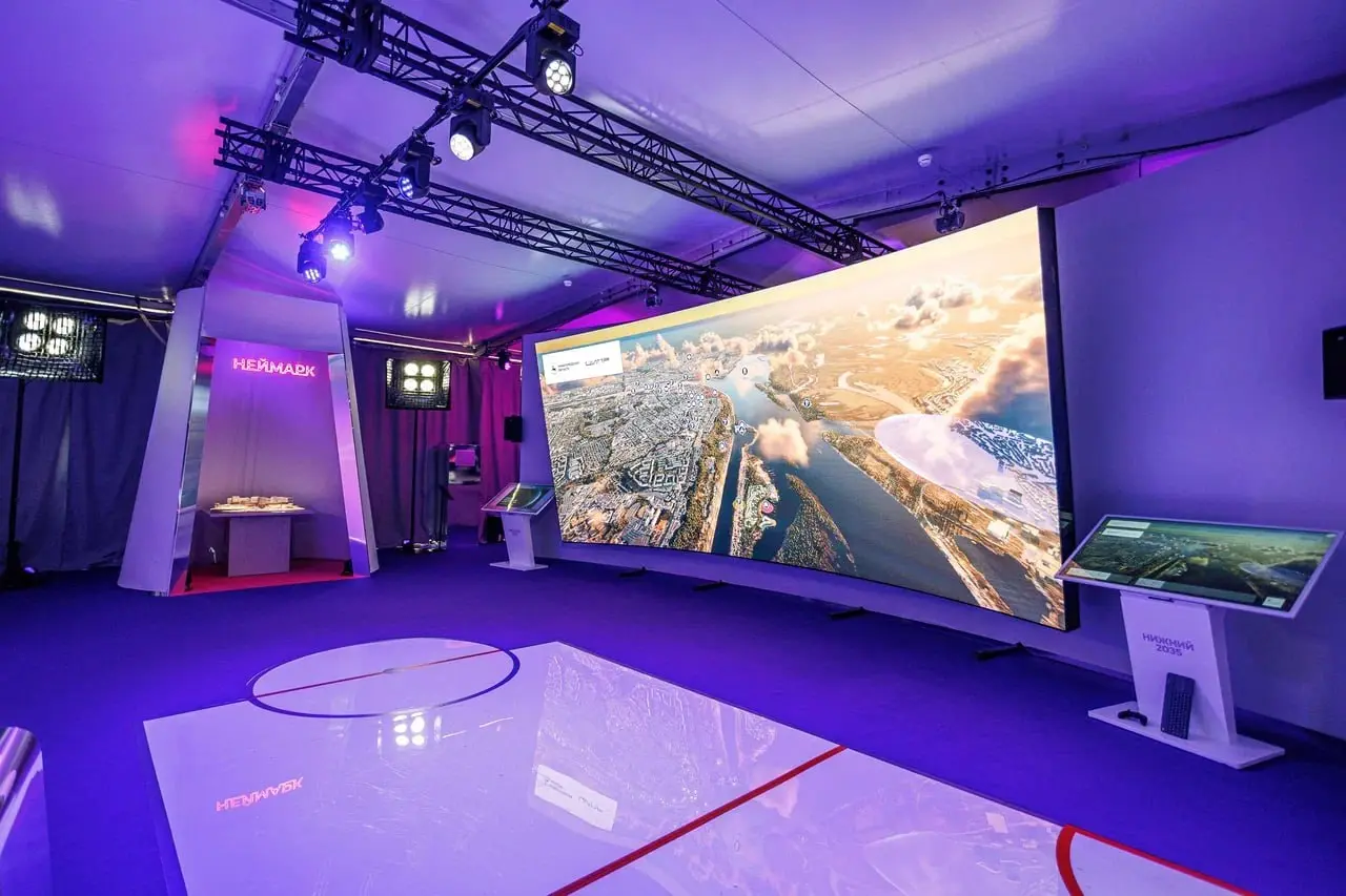«Павильон «Нижний 2035» — это территория, где мечты обретают форму. Здесь можно прокатиться по городу будущего, крутя педали велотренажёра и собирая цифровые монеты. Можно метко отправить шайбу в ворота и на огромном экране увидеть, как оживают флагманские проекты региона - это ледовая арена, «Семейный квартал» и «Город здоровья», цифровое ГТО, ИТ-разработки, «умные» решения и инвестиционные проекты, которые уже меняют жизнь людей», — так описал экспозицию губернатор Глеб Никитин.