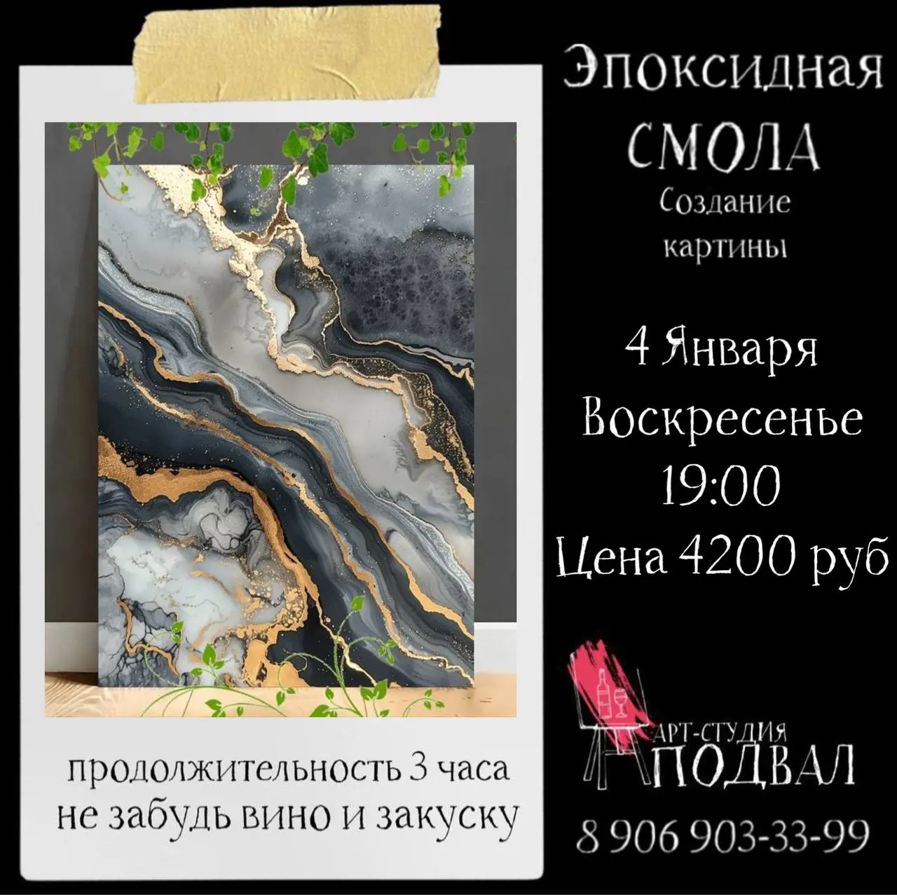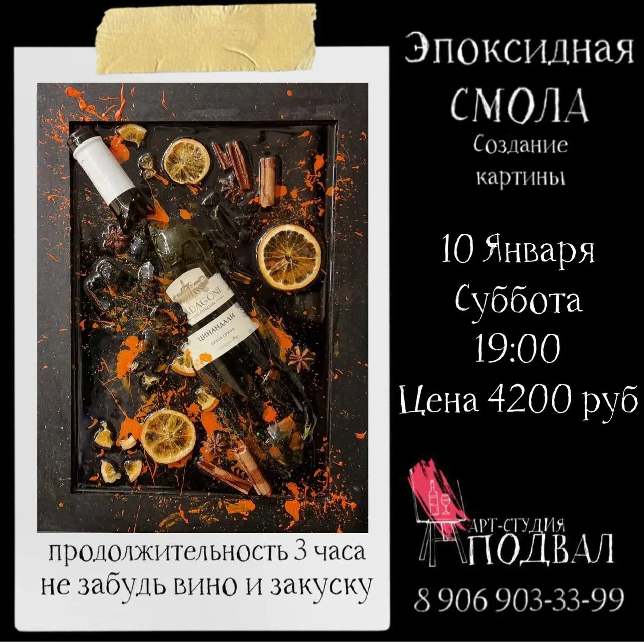 Приглашаем на мастер-класс по созданию картин из эпоксидной смолы. 10 января в 19:00. Продолжительность 3 часа. Возьмите с собой вино и закуски.