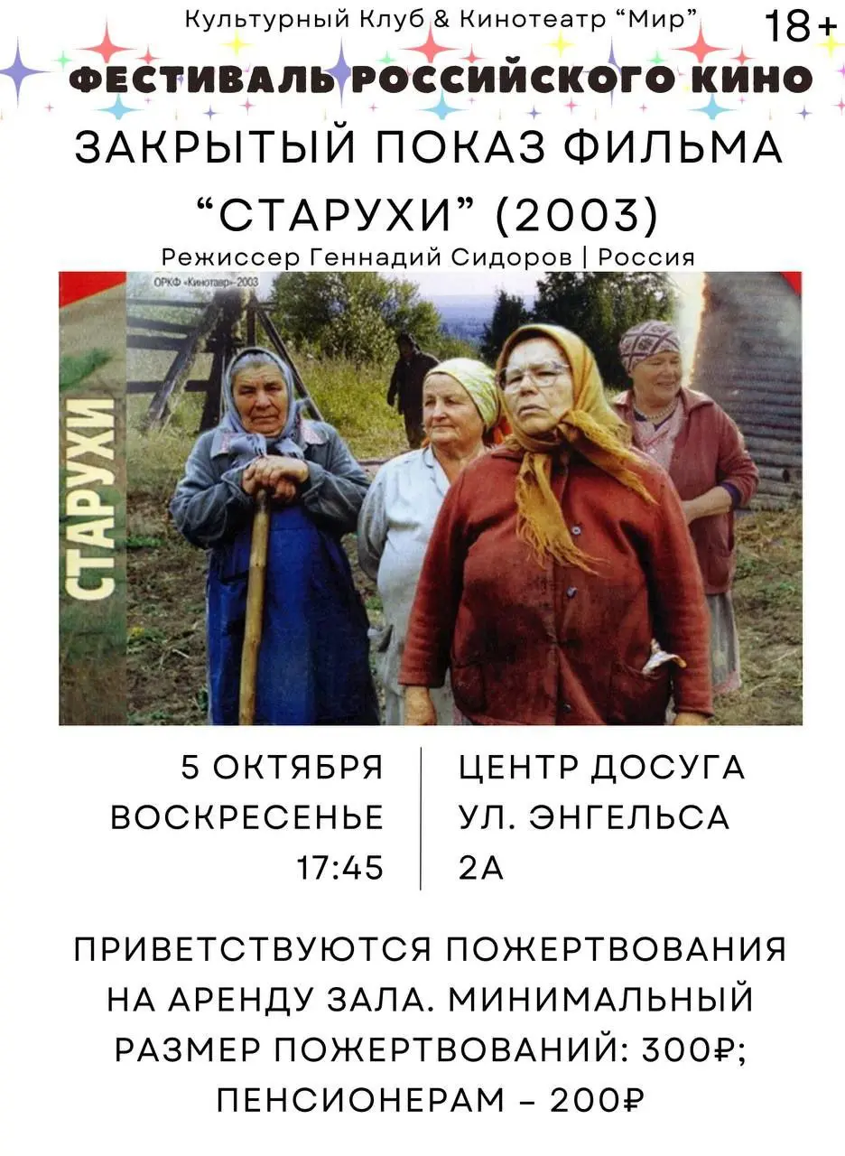 Культурный Клуб приглашает на закрытый показ фильма «Старухи» (2003)