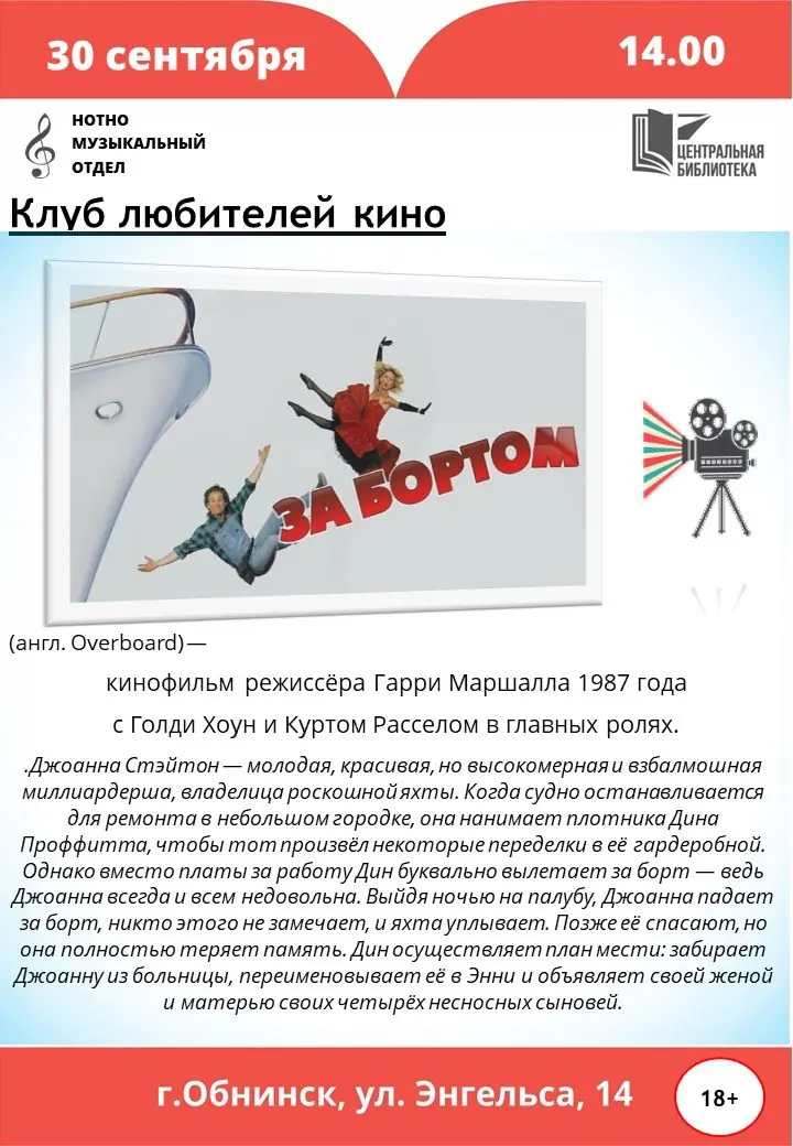 Клуб любителей кино приглашает просмотр и обсуждение фильма «За бортом» (1987)
