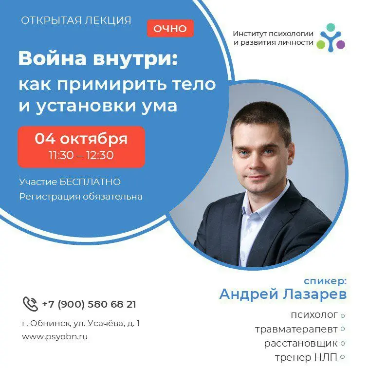 Открытая лекция: "Война внутри: как примирить тело и установки ума"