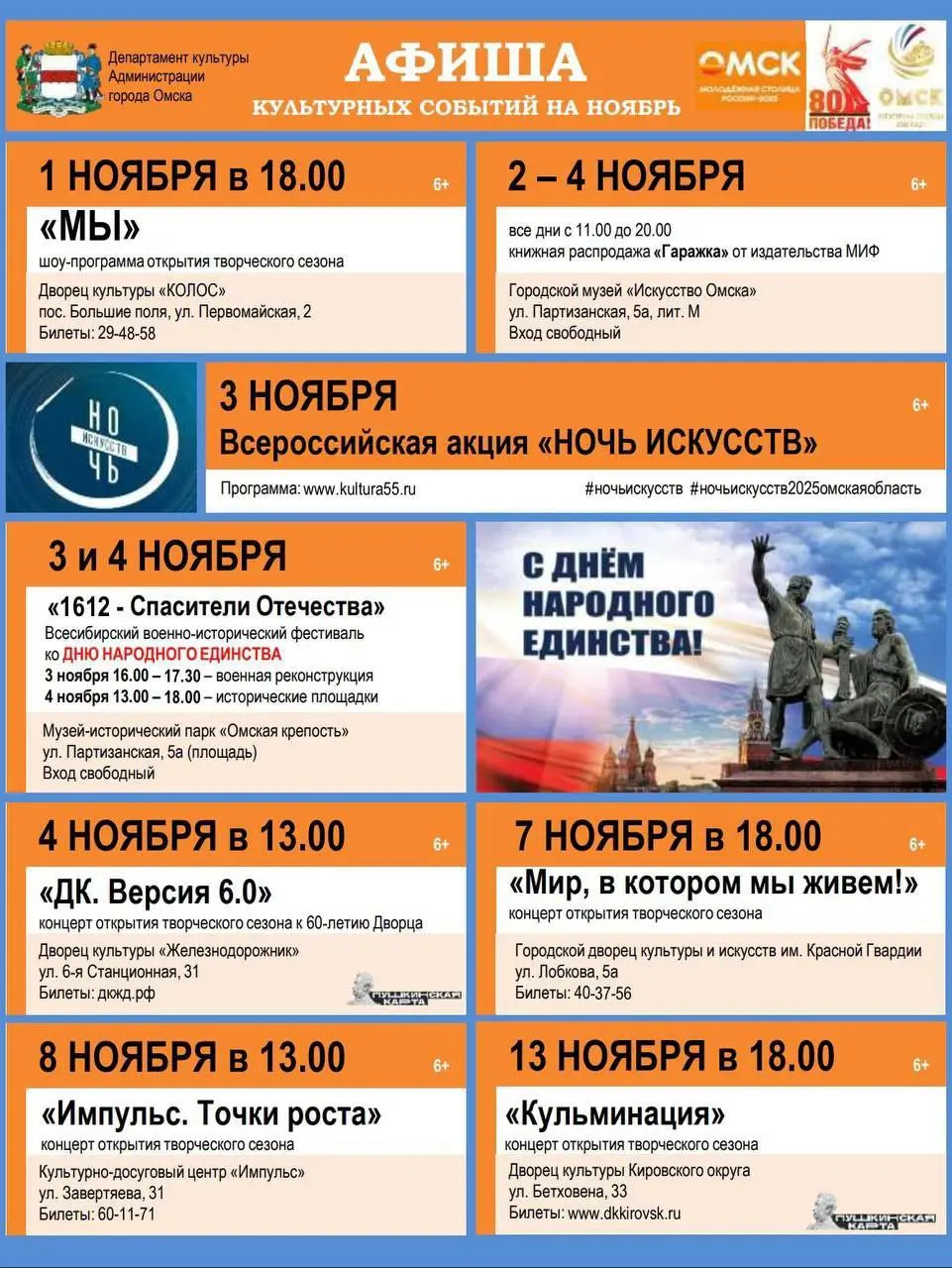 Фестиваль ДИСКАЧ 90-Х отправляется в Омск. Встречаемся 29 ноября 2025 на сцене «G-Drive Арены»! На сцене выступят: На-На, Вирус, Акула, Отпетые мошенники, Стрелки (Юлия Беретта), Игорёк, Краски, Фактор-2 и другие звезды 90-х. Новое трёхчасовое шоу, киловатты звука и света, танцы нон-стоп. Заказ билетов: diskach.ru.