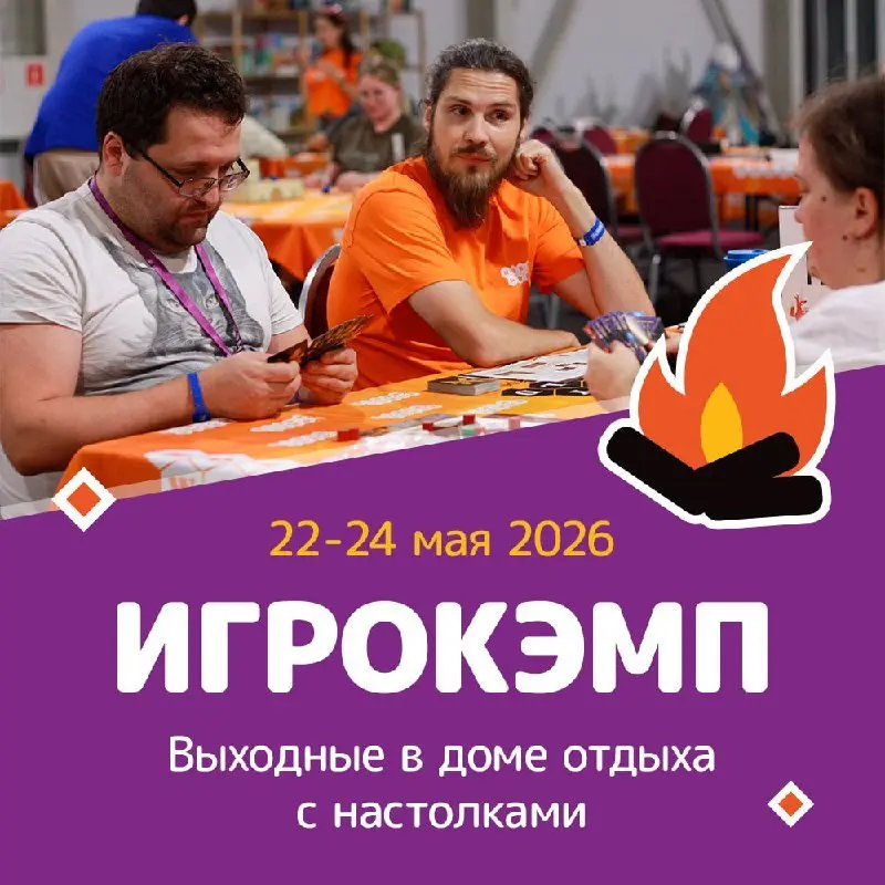 С 22 по 24 мая в Путилково (Красногорск) пройдёт фестиваль настольных игр Hobby World "Игрокэмп". Гостей ждут выходные в доме отдыха с обширной коллекцией из более чем 200 настольных игр от издательств Hobby World, Magellan, Стиль Жизни и Звезды. Программа включает работу игромастеров, мастер-классы по сборке моделей и захватывающий турнир. Предусмотрены варианты с проживанием и питанием.