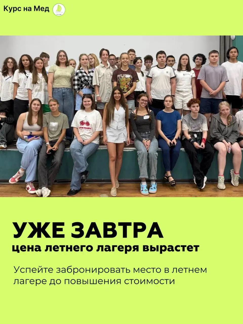 Летний лагерь "Курс на Мед" предлагает школьникам 12-18 лет погрузиться в профессию врача. Участники получат практические навыки от опытных специалистов и смогут понять, подходит ли им медицина. В программе мастер-классы и лекции от врачей различных специализаций. Предусмотрен активный отдых на свежем воздухе и новые знакомства. Участники будут работать над командным проектом, развивая навыки командной работы, критического мышления и креативного подхода. Стоимость лагеря увеличится завтра, есть возможность забронировать место по старой цене.