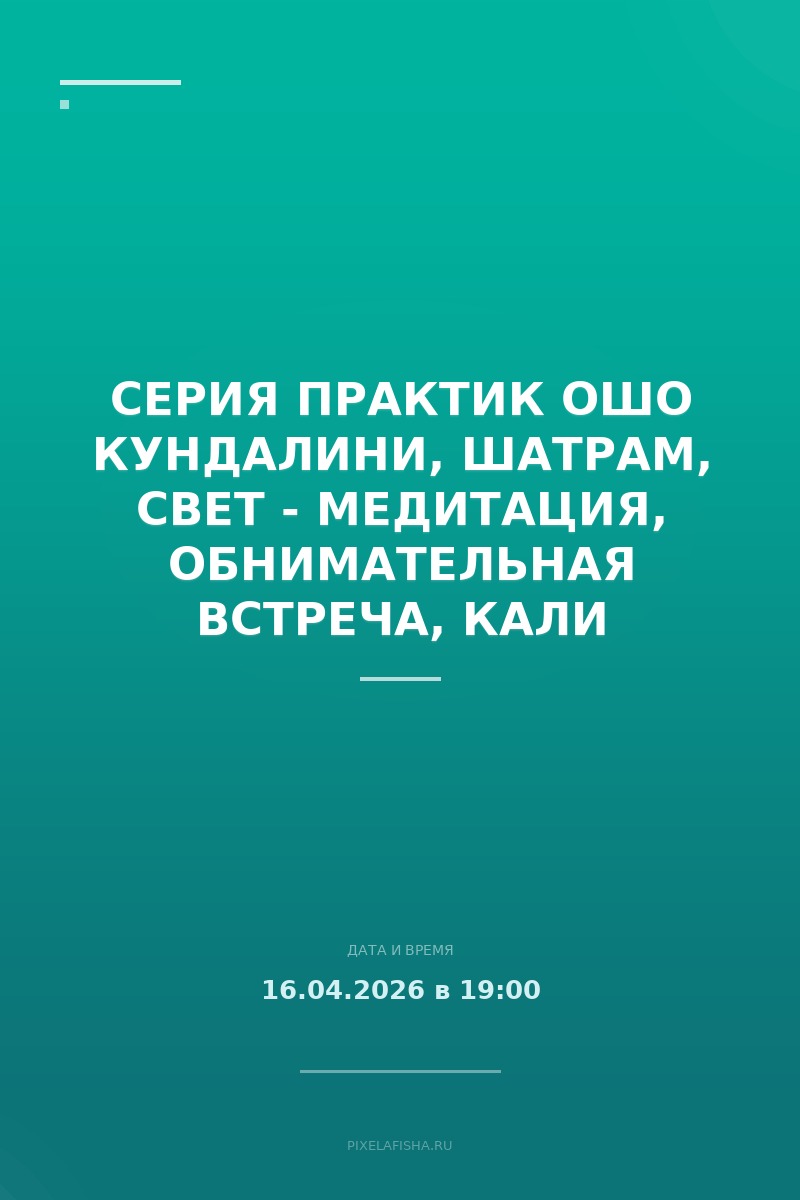 16 апреля в четверг с 19:00 до 21:00 состоится "ОШО Кундалини". Эта динамическая медитация помогает освободить энергию и достичь глубокого расслабления.