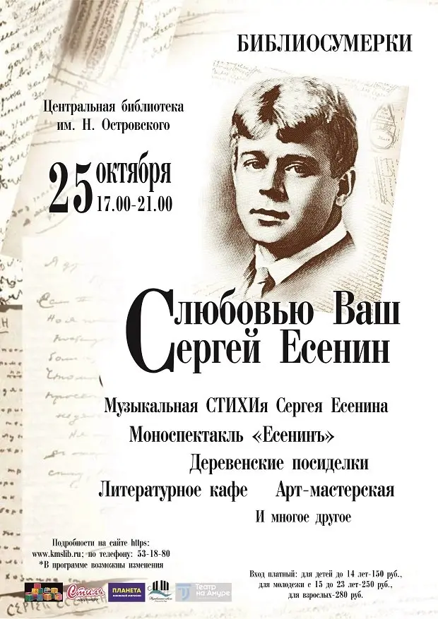 Библиосумерки «С любовью Ваш Сергей Есенин»
