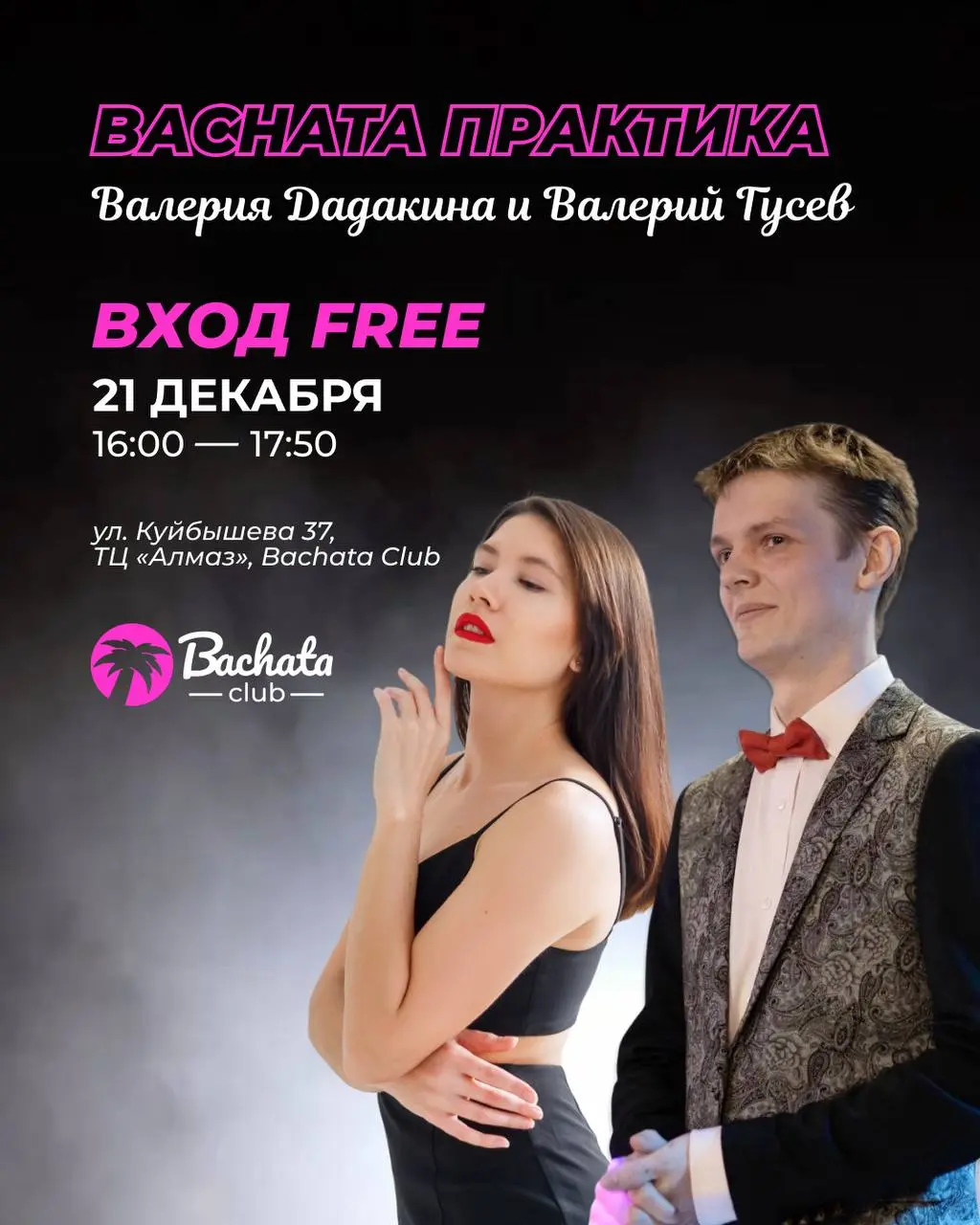 На этой неделе Bachata Club подготовил насыщенную программу. Гостей ждут танцевальные интенсивы от специального гостя из Тюмени. Будут соло и парные классы по импровизации. Также, состоится новогодний отчетный концерт с выступлениями учеников и преподавателей. Завершит танцевальную неделю бесплатная практика по бачате. 🔥