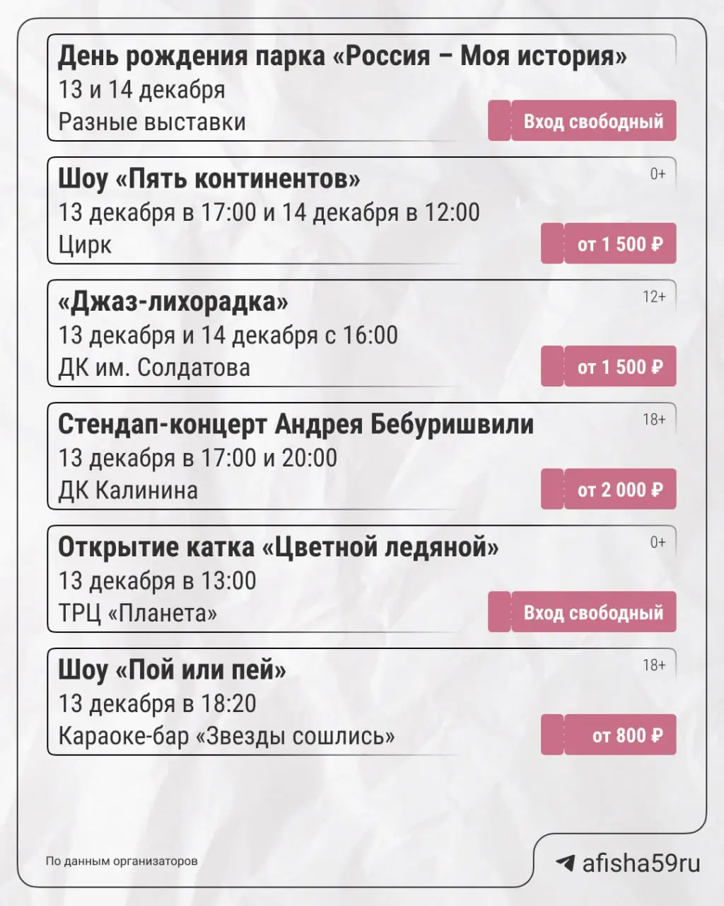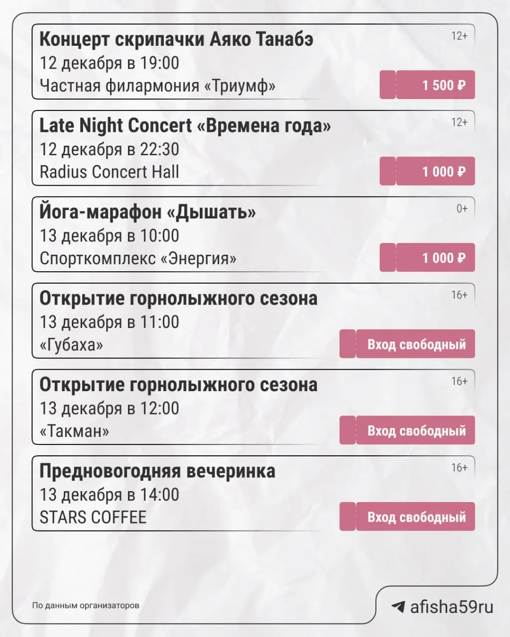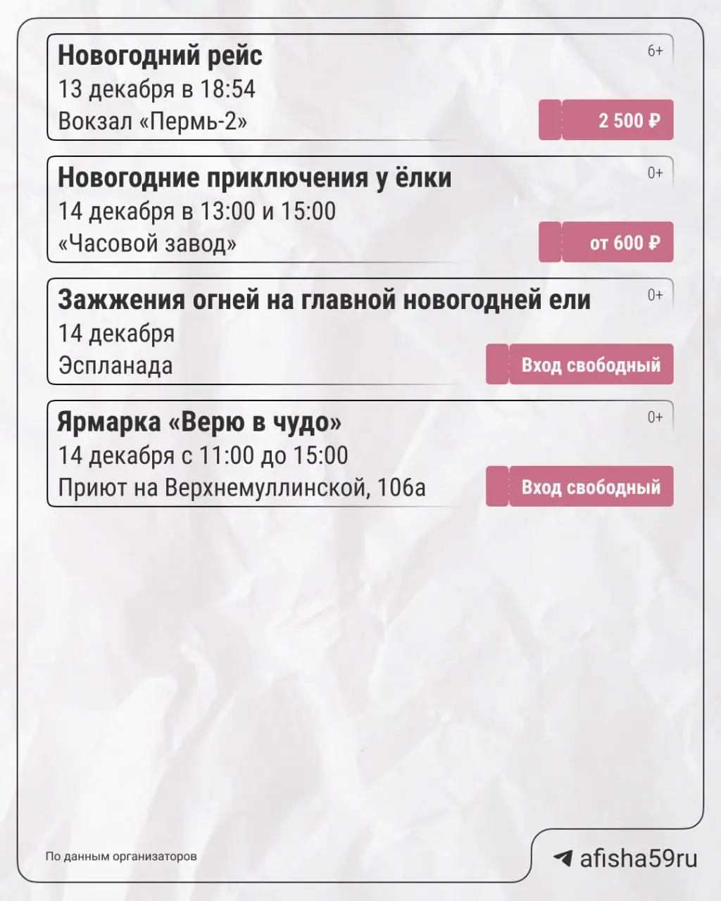 Пермь приготовила насыщенные предновогодние выходные. В программе: открытие катка, стендап-концерт и фестиваль джаза. Также запланированы новогодние приключения у елки и ярмарка. На эспланаде состоится зажжение огней на главной новогодней ели. 🎄 Вас ждут открытия, веселье и праздничная атмосфера.