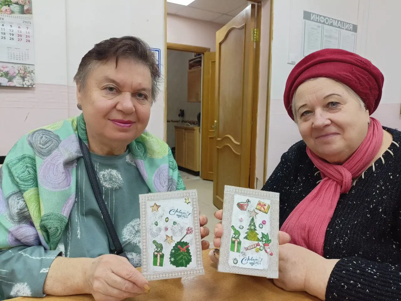 В мастерской проходят творческие занятия, где можно создать уникальные новогодние открытки. Мастерицы работают с энтузиазмом и любовью. Каждый элемент открытки — это частичка тепла и предвкушения праздника. Занятия проходят по вторникам в 10:00 в социальном центре.