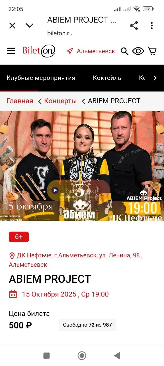 Отно-эксперименталыый проект 6+ Нам ет! Обиым Wmnult ABIEM Praject 15 октября 19.00 Билеты покупайте на сайте: ДК Нефтьче BILETONRU