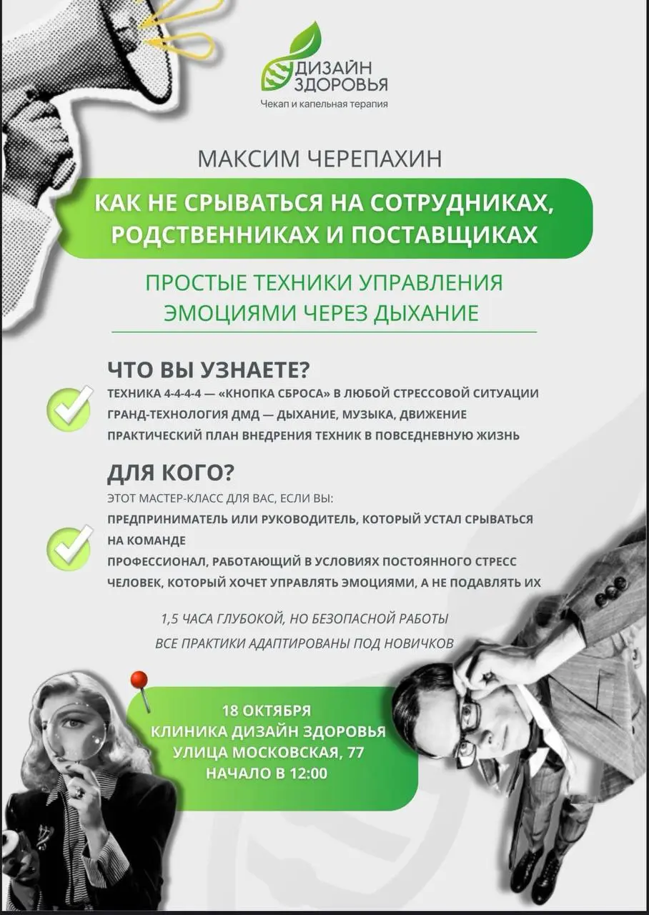 - выдохнуть городской стресс (буквально — через дыхательные практики)