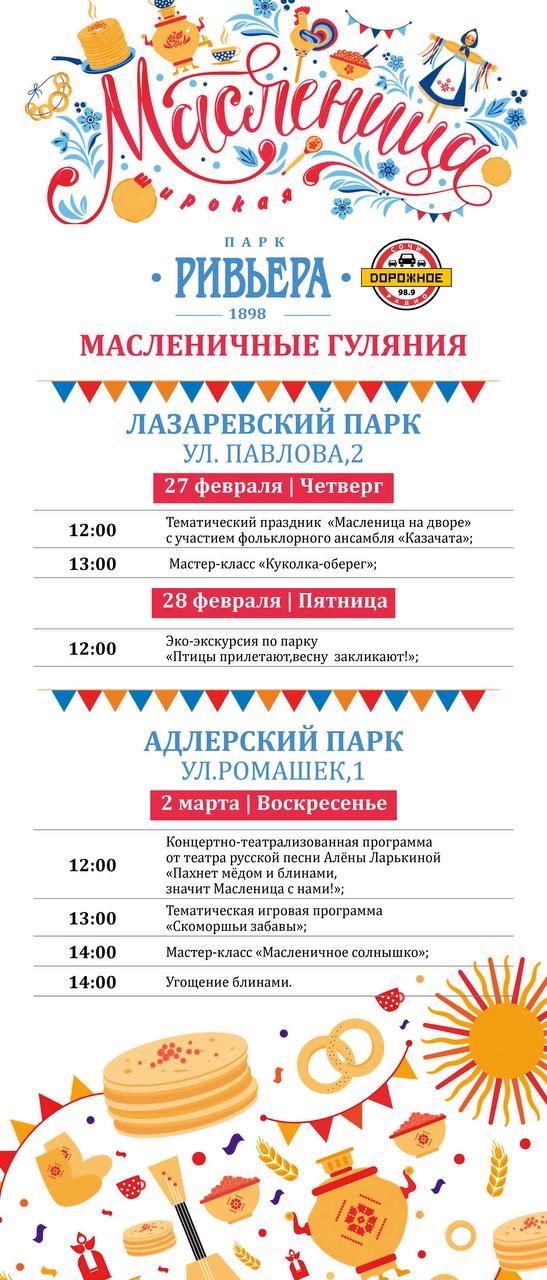 - 12:00-15:00 Масленичные гуляния: праздничный концерт, мастер-классы, соревнования.