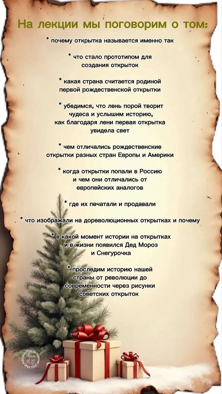 Приглашаем вас на лекцию с чаепитием об истории рождественской открытки. Вы узнаете, почему открытки так называются, как они появились и какие страны считаются родиной. Узнаете, чем отличались рождественские открытки разных стран. Вы узнаете, когда открытки попали в Россию и чем они отличались. Также вы узнаете истории, изображенные на открытках. ☕ Лекция пройдет в кофейне на улице Чайковского. Приобрести билеты можно у @ooroopi.