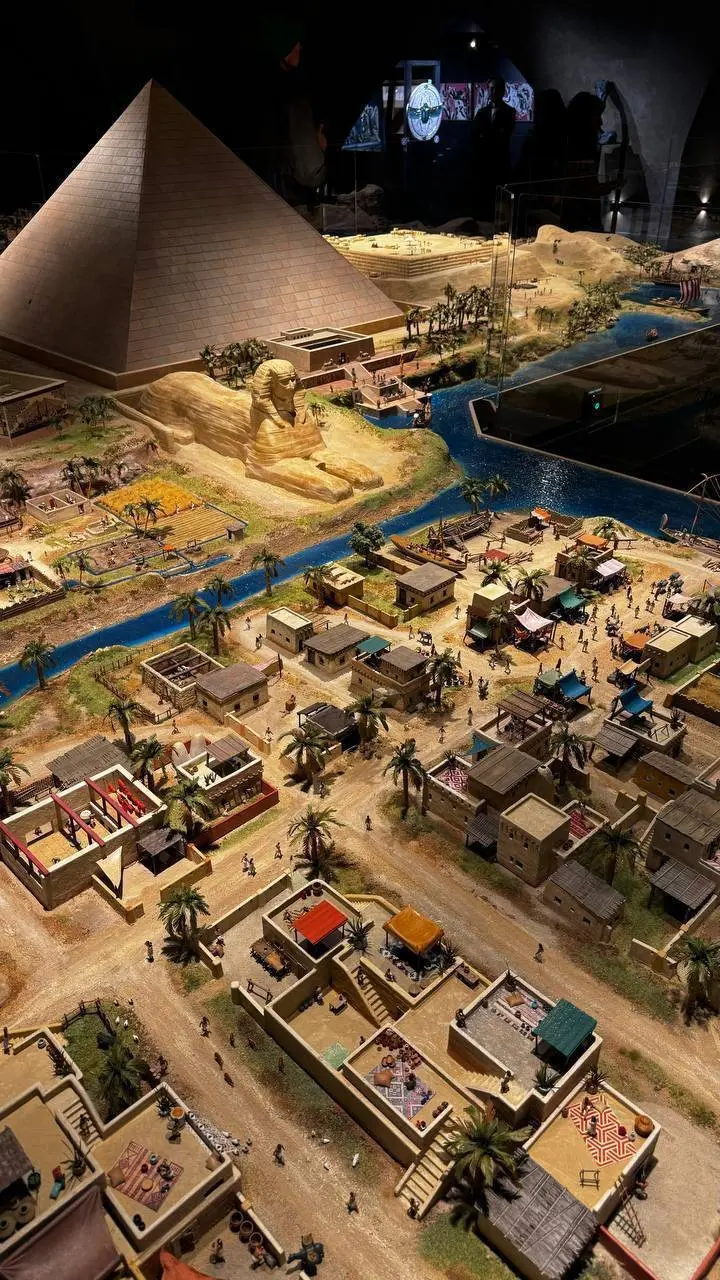 Приглашаем вас в мир Древнего Египта! Постоянная экспозиция переносит вас на берега Нила. Вы увидите жизнь древнего города и тени пирамид. 46 зданий и сооружений, 265 животных, 339 кустарников и деревьев, а также 1265 фигурок персонажей ждут вас. Приходите всей семьей! 🐪