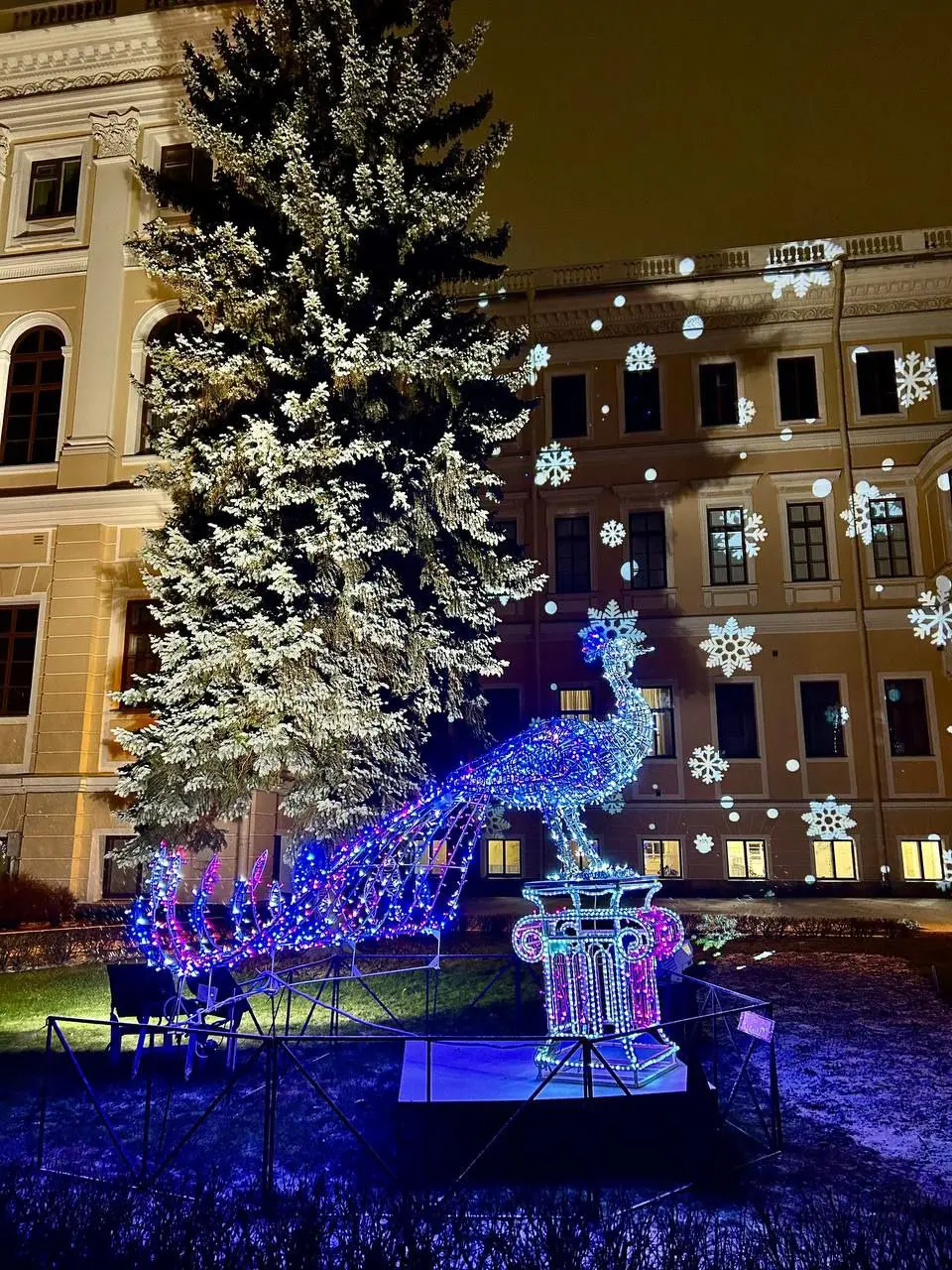 Прогуливаясь по Невскому проспекту, загляните во дворик Аничкова дворца. Там вас ждут сказочные персонажи. Здания украшены световыми снежинками❄. Приходите насладиться этой красотой! Вход свободный.