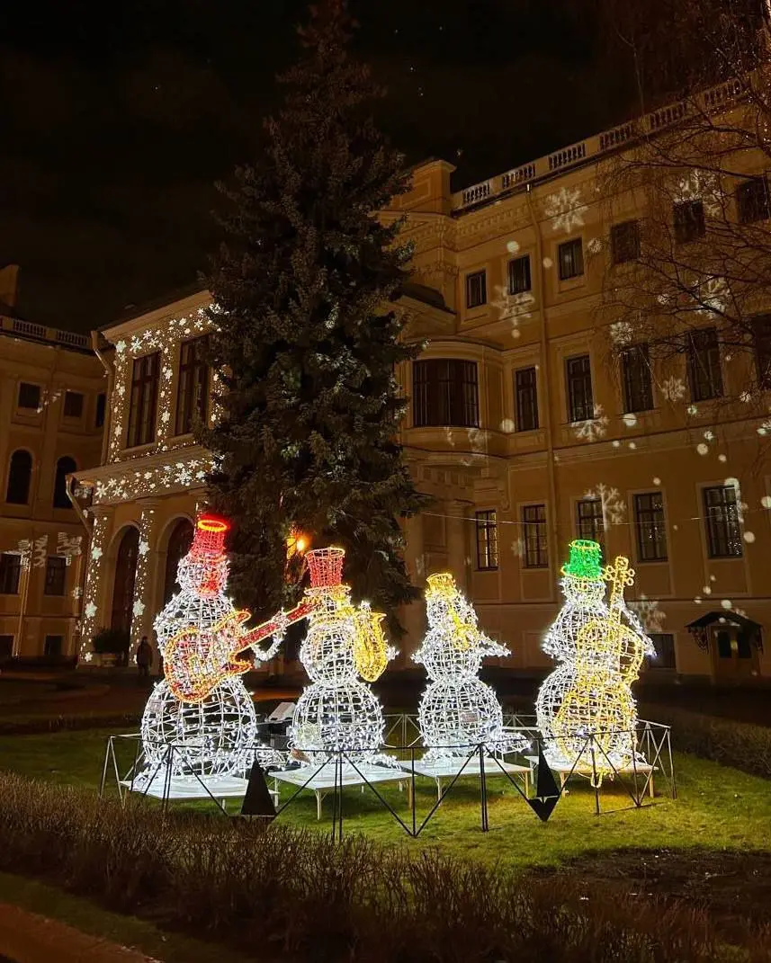 Приглашаем вас в Сказочный дворик у Аничкова дворца. Здесь, среди сказочных фигур, мерцают световые снежинки. Они падают на старинные стены зданий. Мероприятие проходит ежедневно. Вход свободный. Посетите это волшебное место!✨